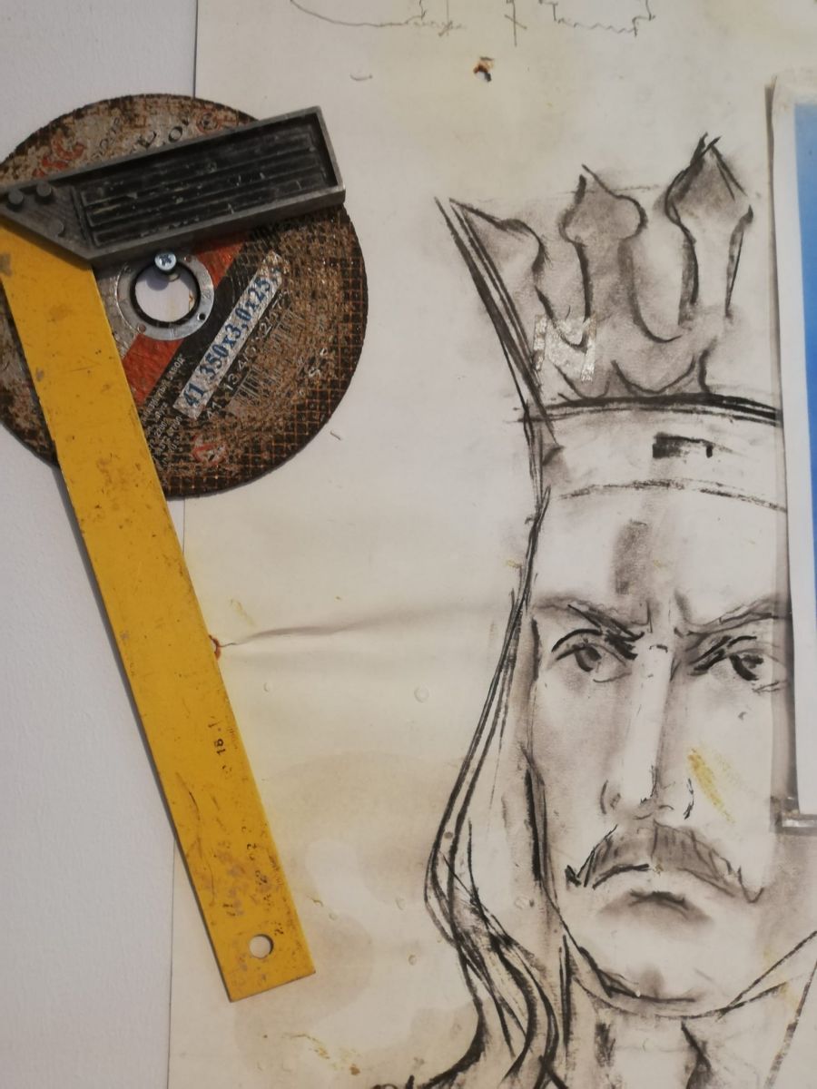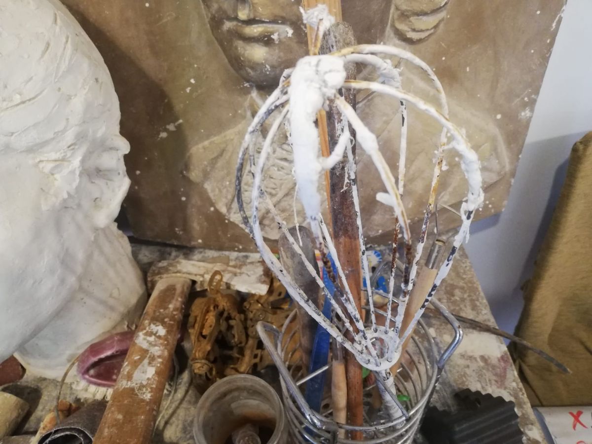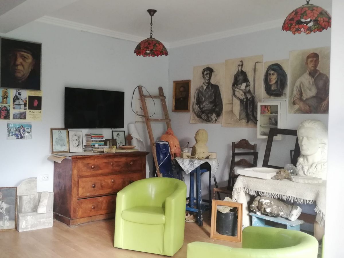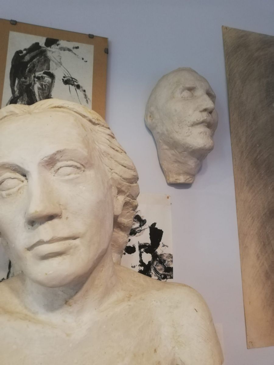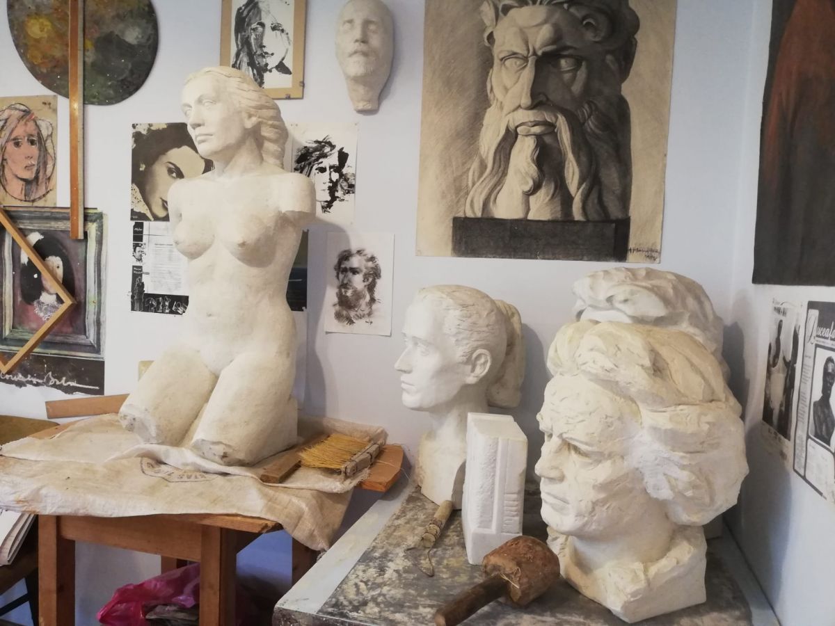 Culorile uscate pe paleta artistului, dălțile mari și mici, schițe, foi răzlețe, albume de artă, fotoliul și pledul ultimelor clipe, studii și gânduri rătăcite...