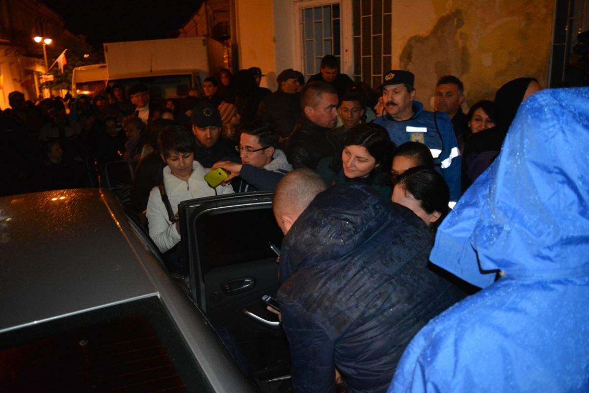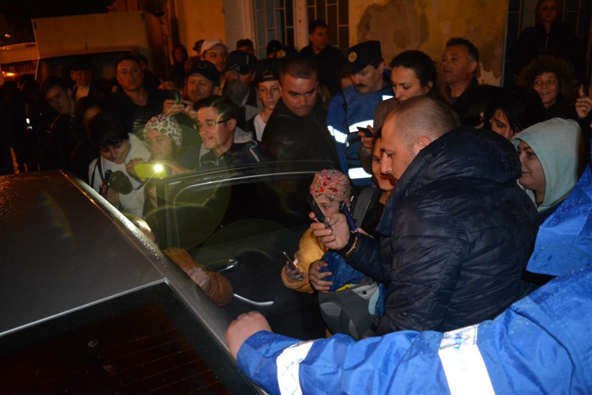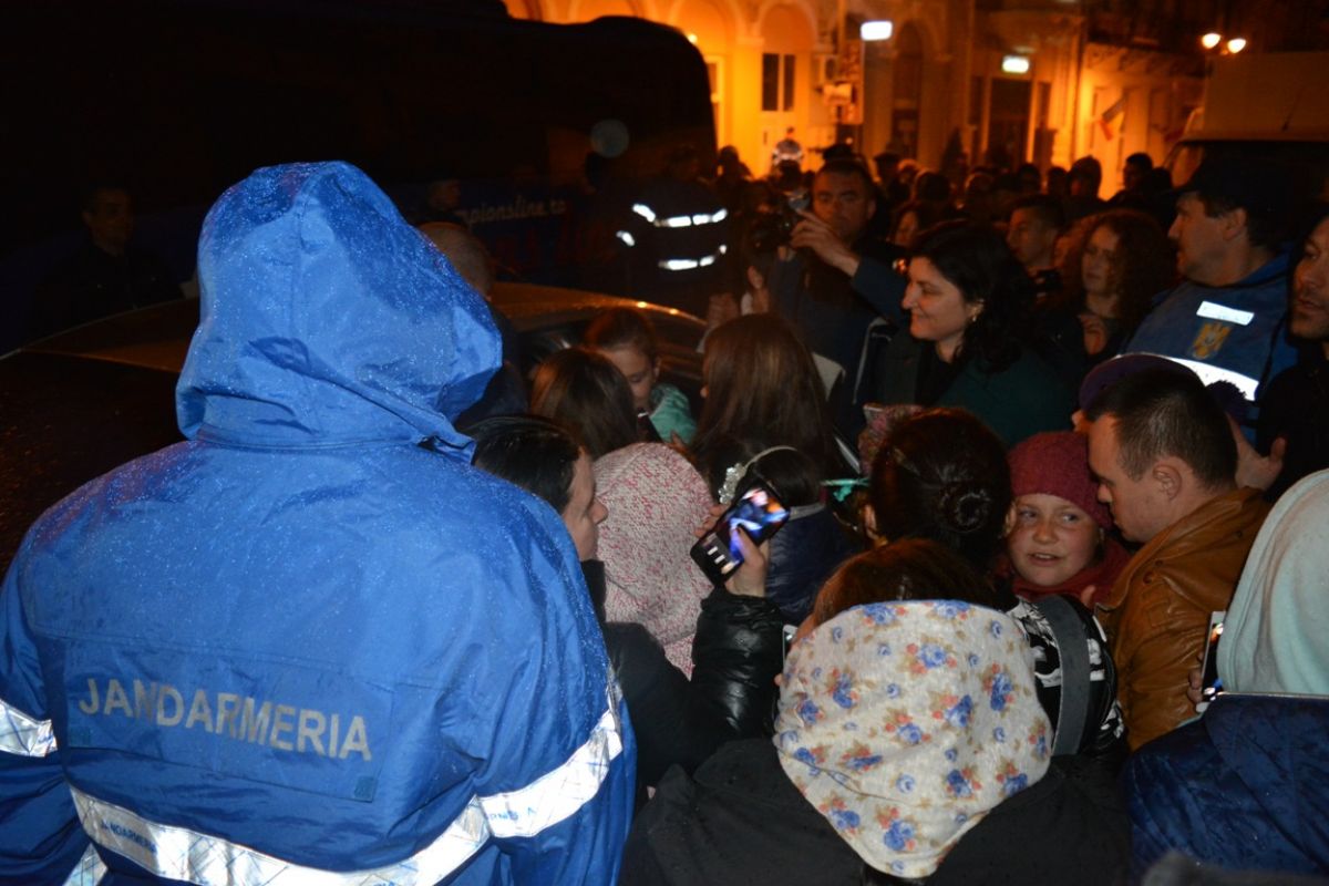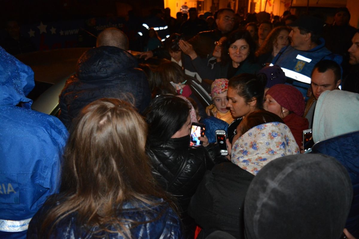 Ca de obicei în astfel de cazuri au apărut și nemulțumiri. ”Avem o gravidă aici”, ”este un copil mic, dați-vă la o parte”, ”jandarmii stau și se uită și nu fac nimic”, s-a auzit din mulțimea care se îmbulzea lângă automobil. ”Și ce vreți să facă jandarmii?” a replicat unul dintre oamenii în uniformă, fără să primească un răspuns foarte clae.