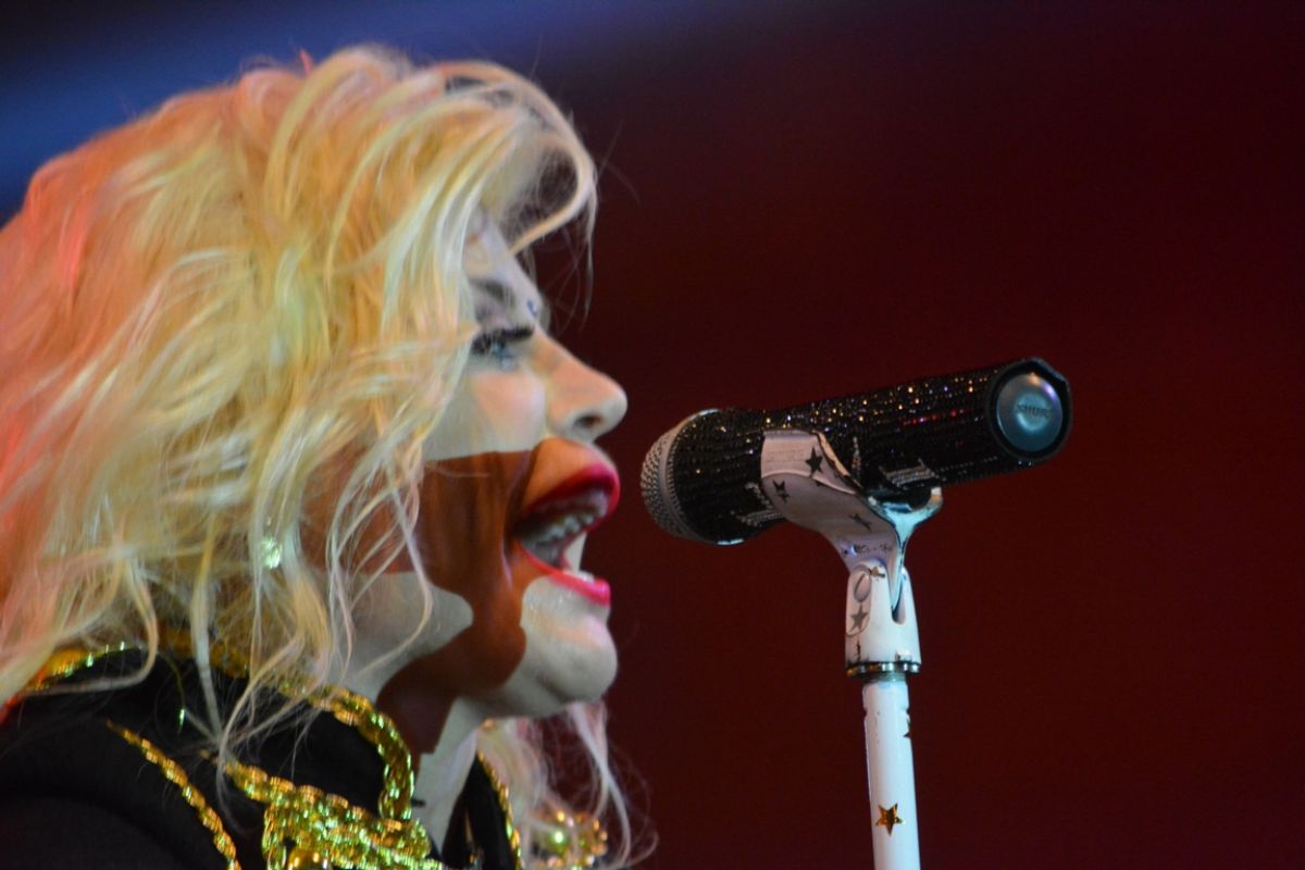 A dansat, a cântat la chitară, s-a urcat pe tobă, după care și-a agățat-o de gât, pentru ca la final, odată cu interpretarea nemuritoarei piese ”Bună seara, iubite”, să termine concertul în genunchi.