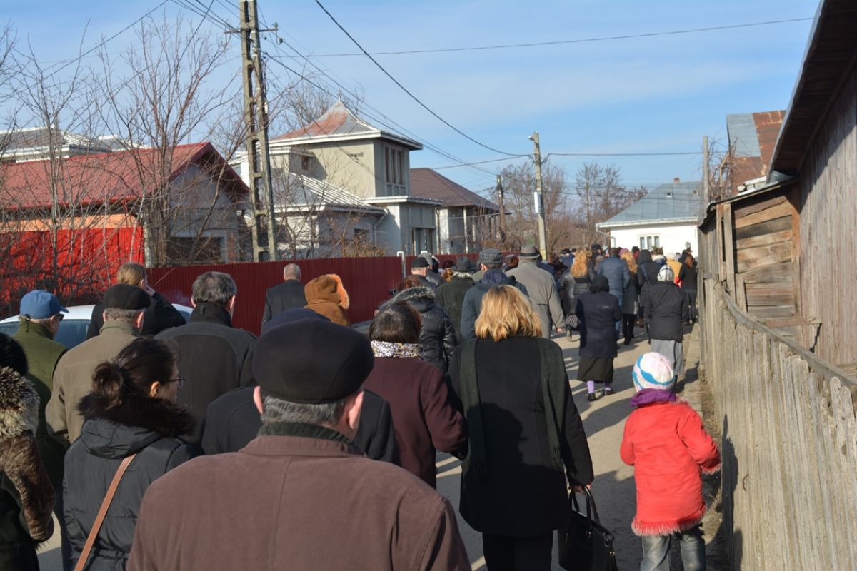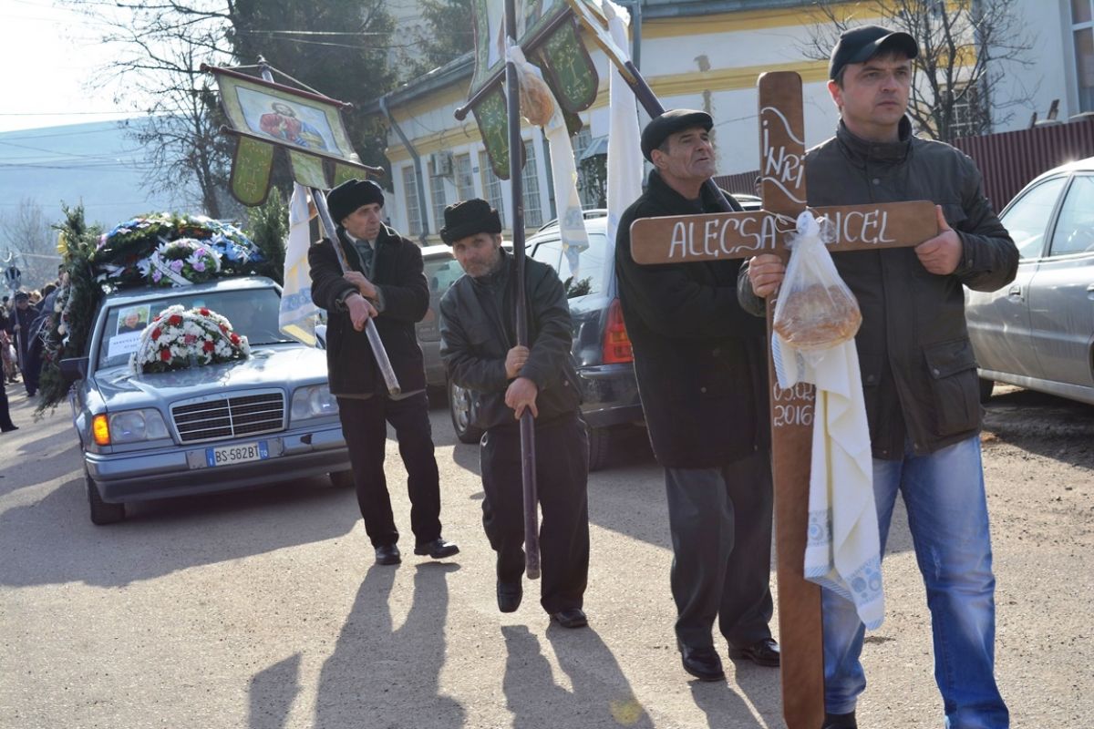 Apoi, cu pași tăcuți, rând pe rând oamenii de aici și-au luat rămas bun de la cel care pleca dincolo. Oameni în toată firea care plângeau ca niște copii. Sicriul i-a fost purtat pe brațe până la ieșirea din curtea lăcașului de cult, acolo unde erau pregătite două mașini fiindcă una s-a dovedit a fi prea neîncăpătoare pentru mulțimea de coroane. Sute și sute de oameni au umplut strada, iar Lucian Alecsa, Lucel din buletin, a plecat sub ochii soției și copiilor, mângâiat de razele soarelui.