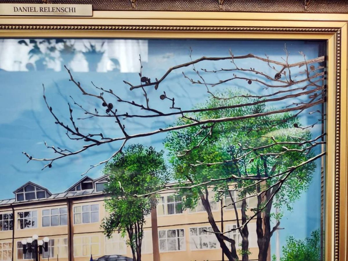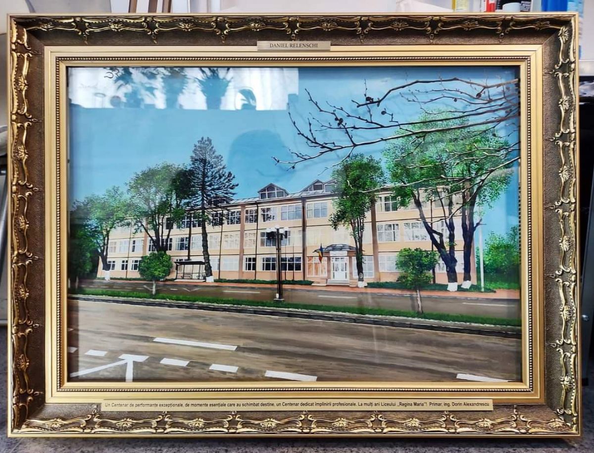 Pictorul Daniel Relenschi, primul pictor 3D din România, a realizat o lucrare 3D în straturi de sticlă ce reprezintă imaginea Liceului ”Regina Maria” din Dorohoi.