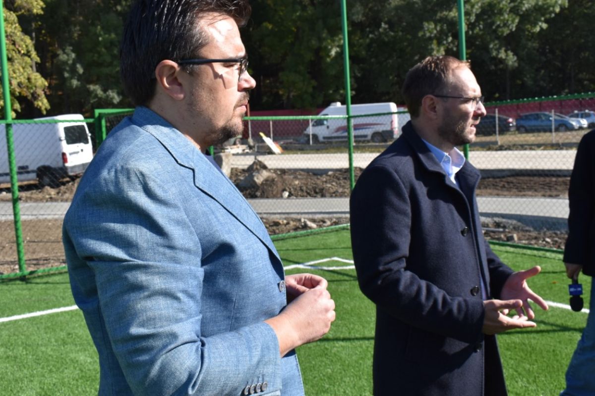 „Avem tribune la amândouă terenurile. Urmează ca într-o a doua fază probabil sau poate luăm o decizie acum să facem și două vestiare, pentru că se pretează fiind o arie sportivă, am discutat și cu constructorul să le putem monta, dintr-un container să putem face două vestiare. Vor fi și competiții sportive aici, interșcolare”,