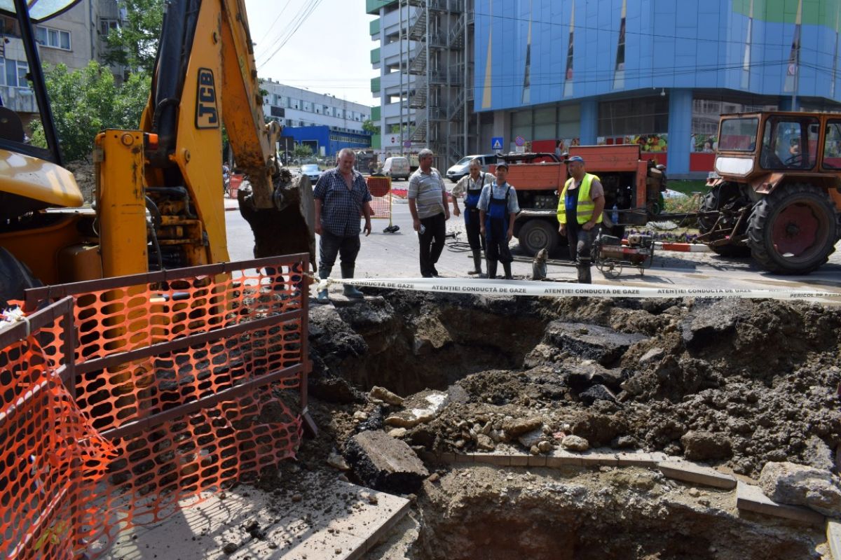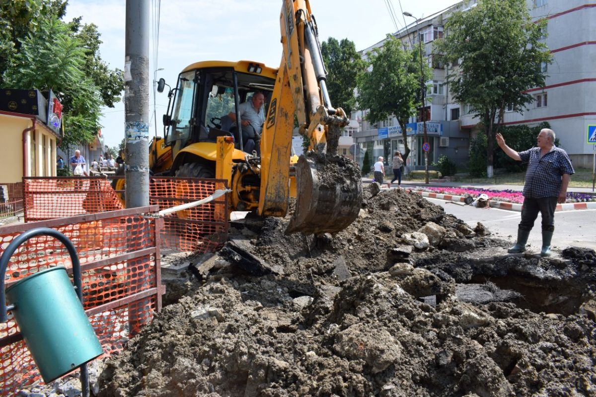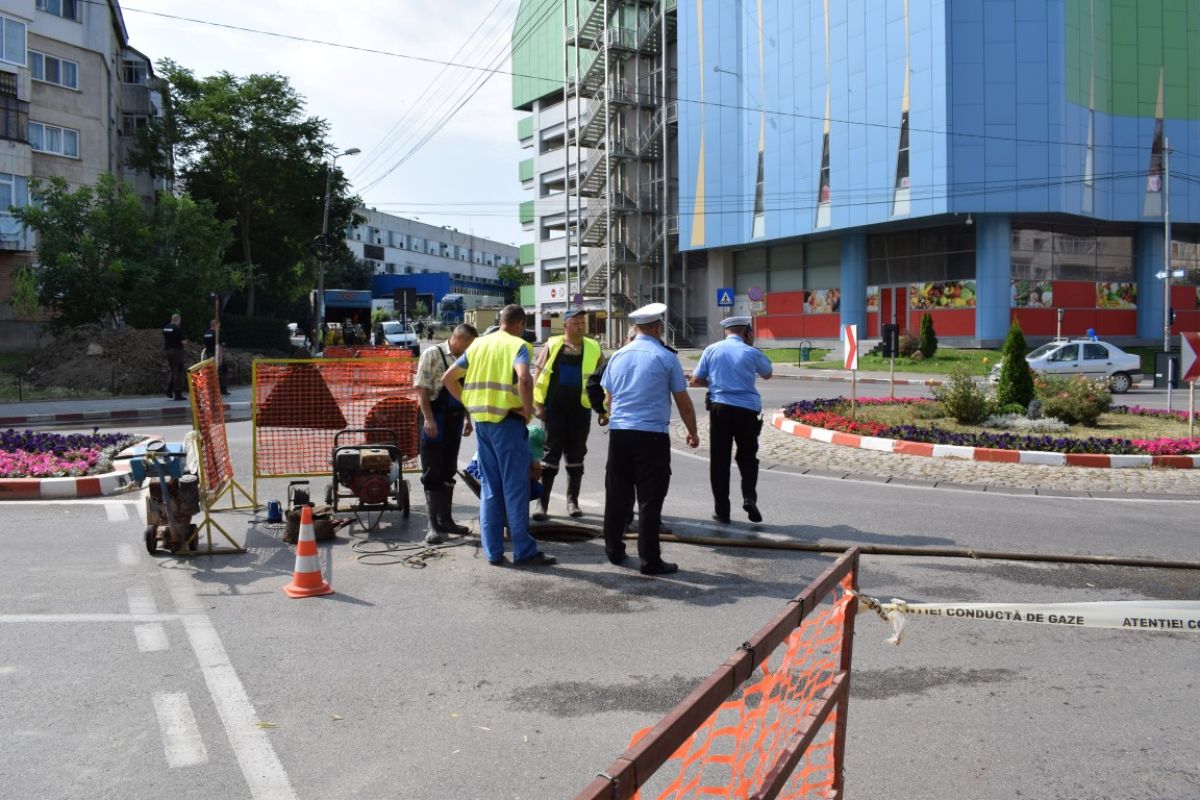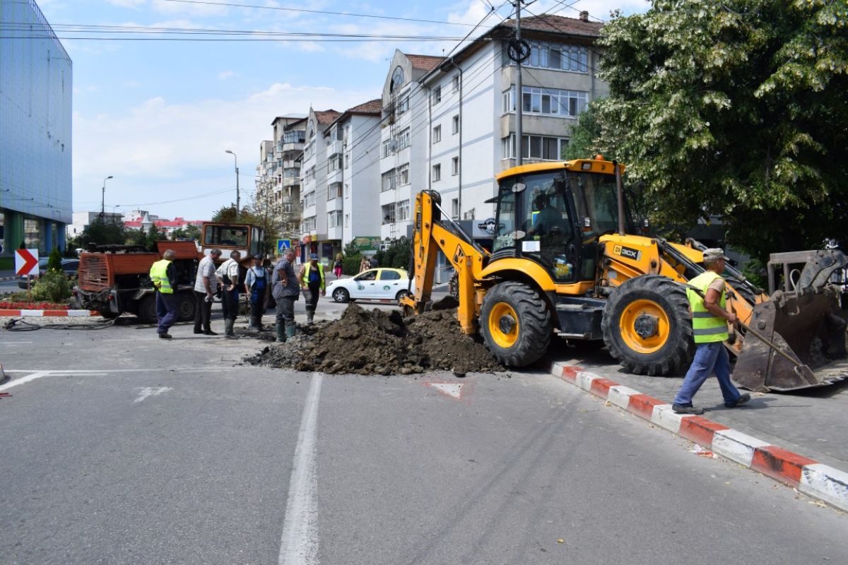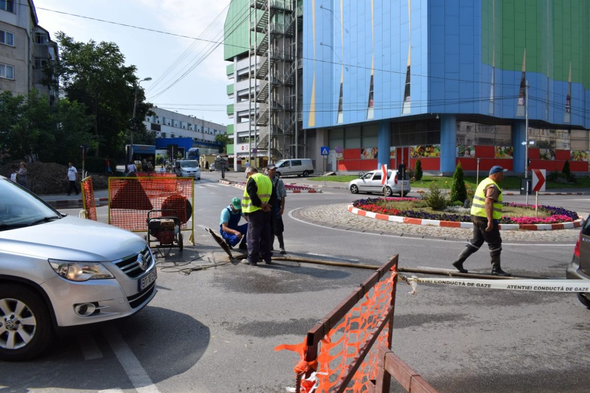 Astăzi, un boldo-excavator aparținând companiei de apă a fost nevoit să intervină la sensul giratoriu de lângă Uvertura Mall unde a săpat o groapă în carosabil pentru a ajunge la unui dintre cămine. Intervenția a fost monitorizată de directorul de exploatare, Ady Petrușcă.