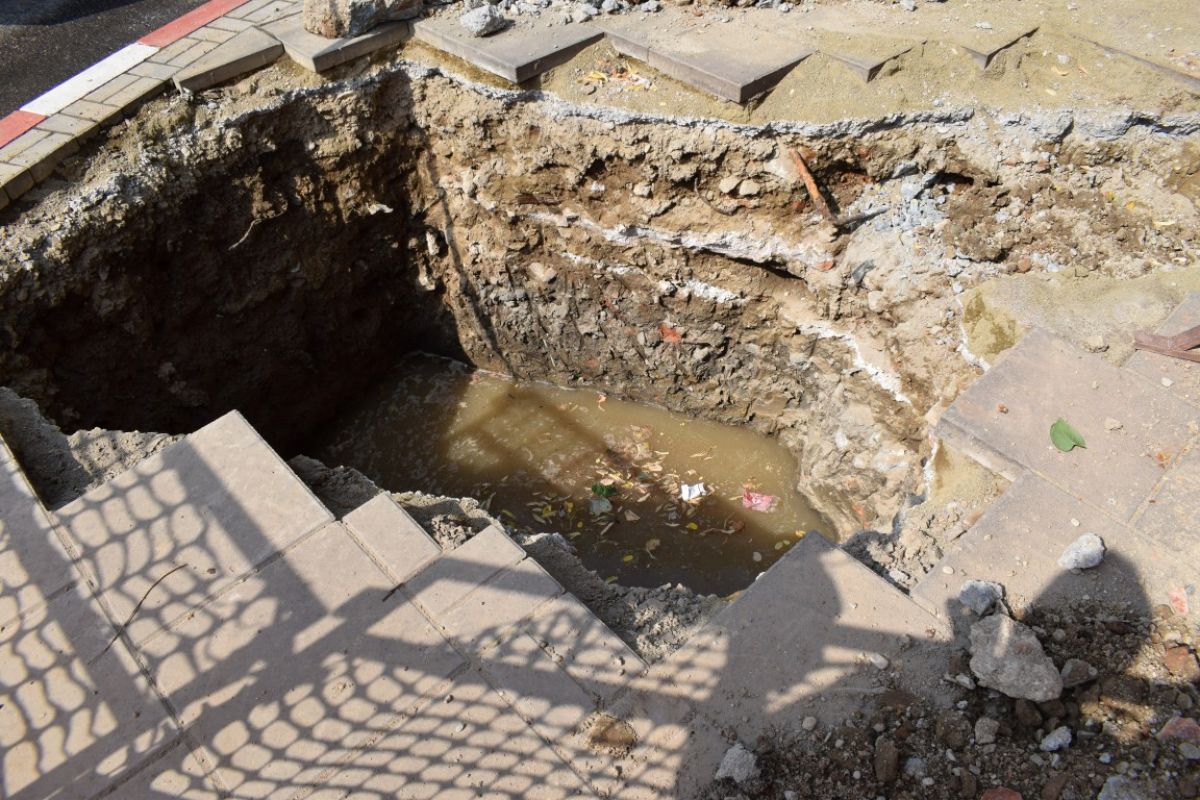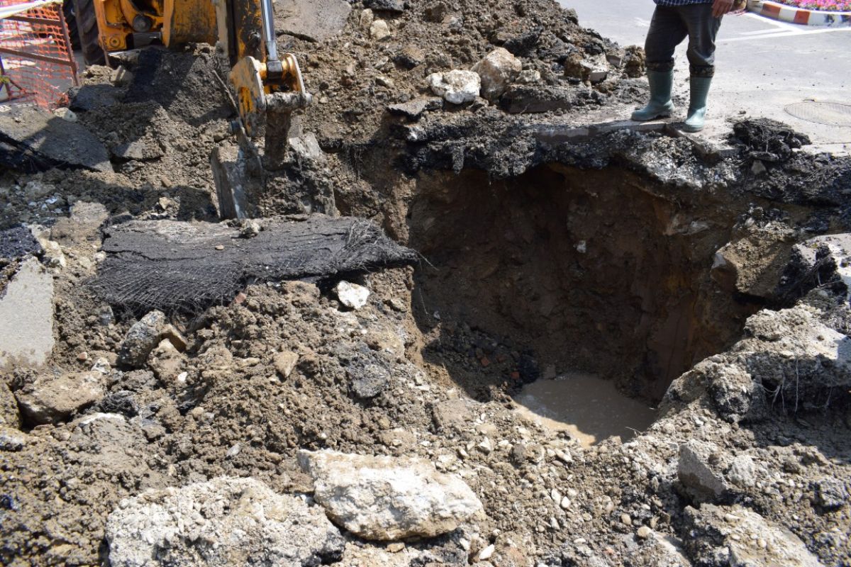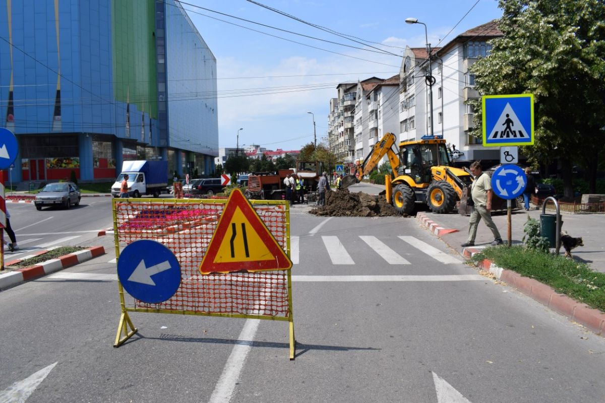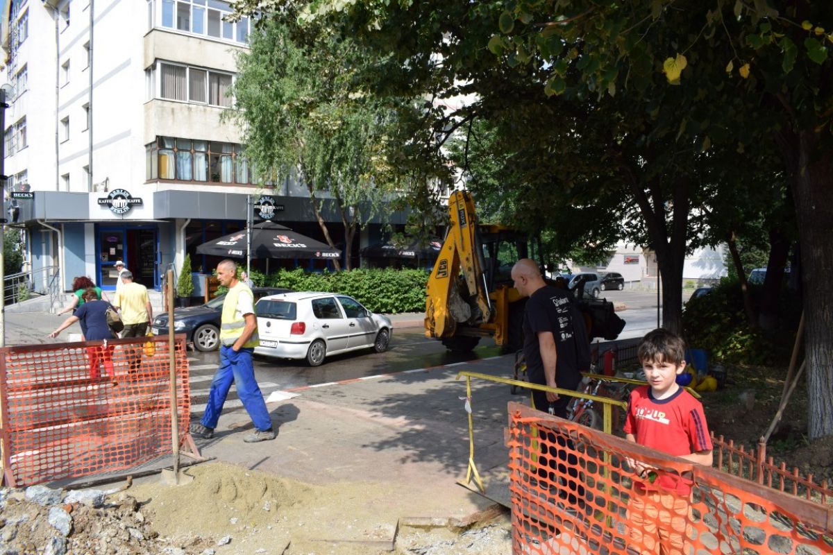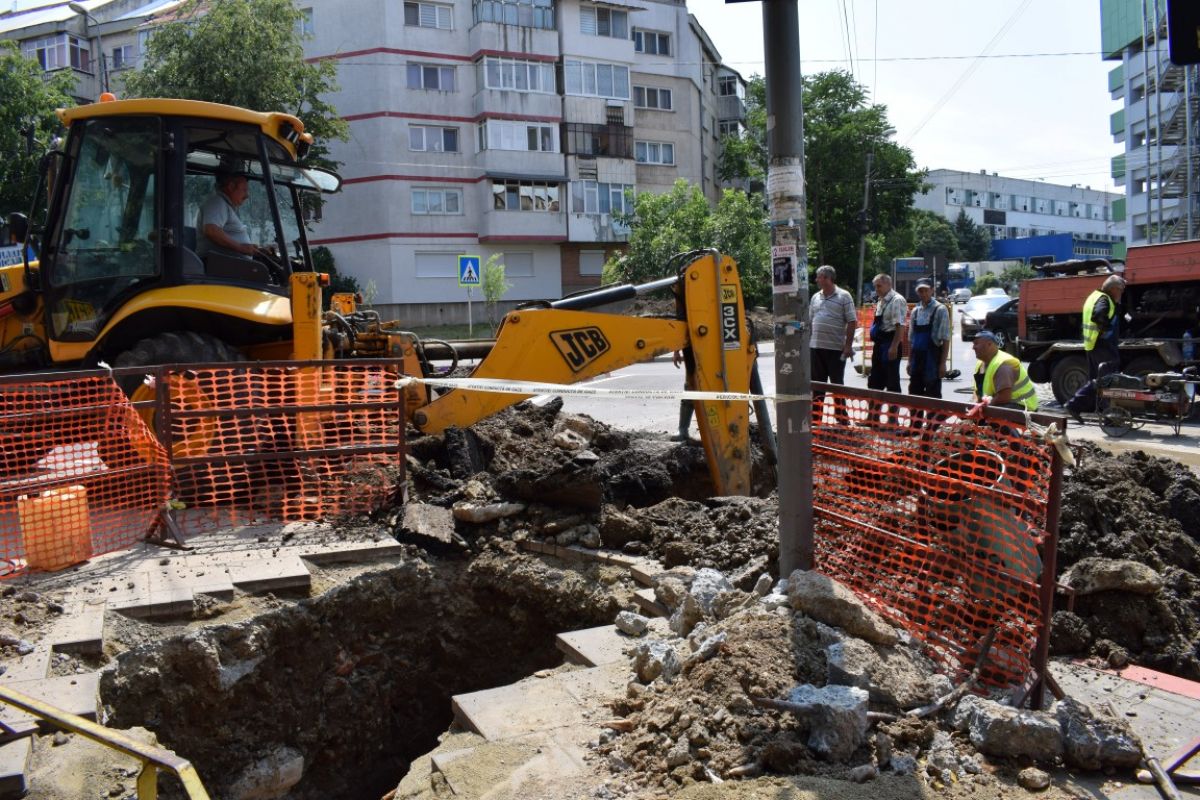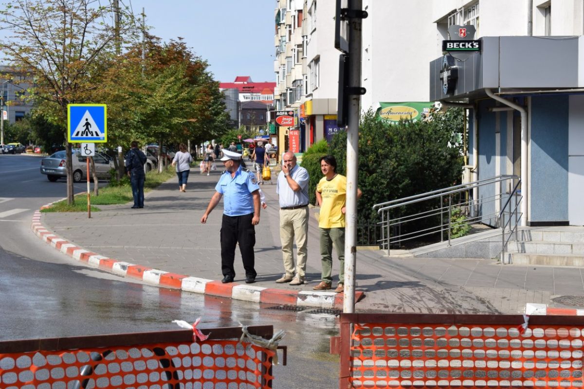 Astăzi, un boldo-excavator aparținând companiei de apă a fost nevoit să intervină la sensul giratoriu de lângă Uvertura Mall unde a săpat o groapă în carosabil pentru a ajunge la unui dintre cămine. Intervenția a fost monitorizată de directorul de exploatare, Ady Petrușcă.