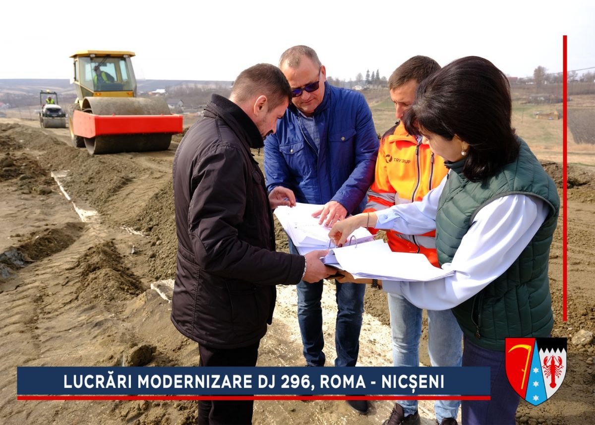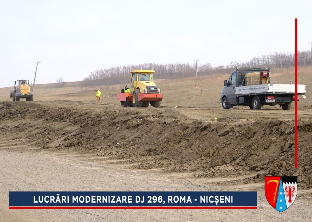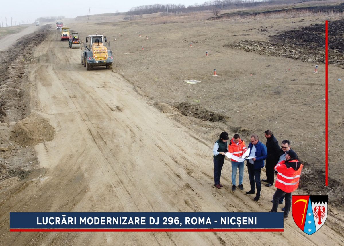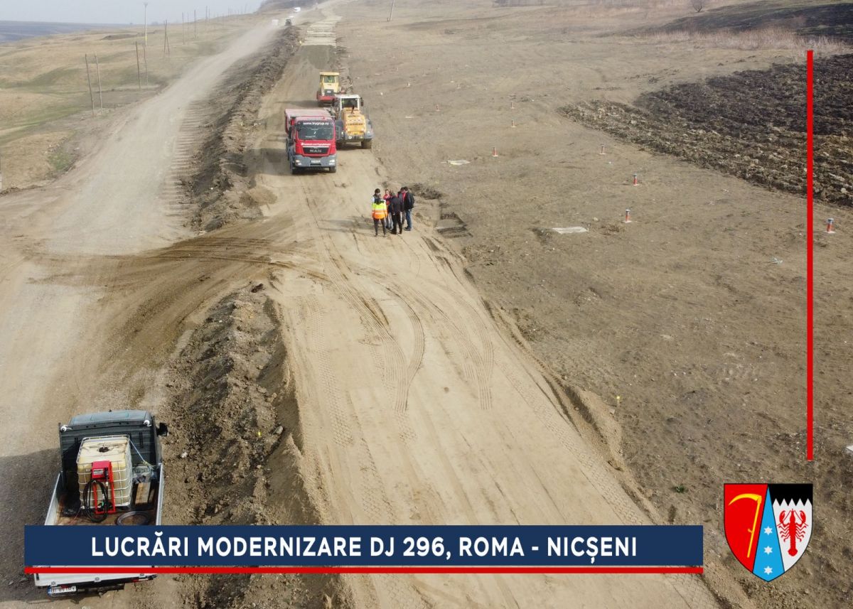 Alunecarea de la ieșirea din comuna Roma era una dintre cele mai grave din județ, dar a fost stabilizată, iar acum va fi refăcut sistemul rutier. După efectuarea umpluturilor de balast și compactarea căii de rulare se va așterne o membrană geotextilă cu rol anticontaminator, peste care se vor turna straturile de fundație: balast (25 cm), piatră spartă (15 cm), membrană geotextilă cu rol antifisură. Peste fundația drumului se vor așterne trei straturi de asfalt.