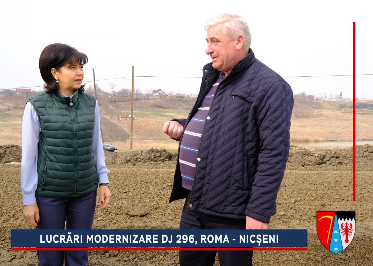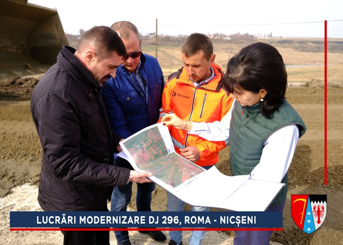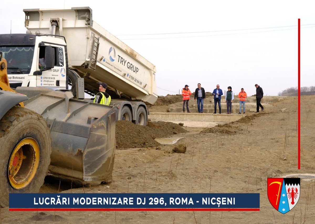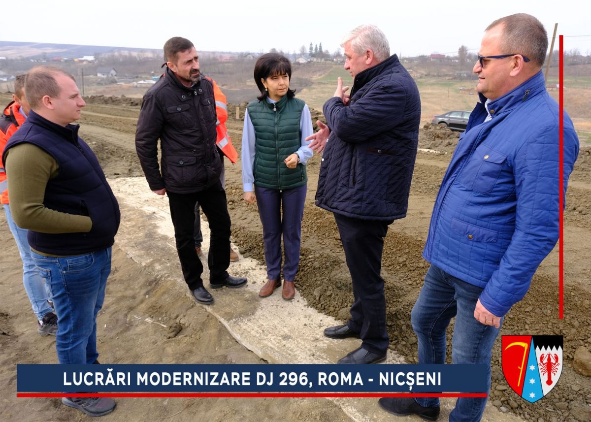 Alunecarea de la ieșirea din comuna Roma era una dintre cele mai grave din județ, dar a fost stabilizată, iar acum va fi refăcut sistemul rutier. După efectuarea umpluturilor de balast și compactarea căii de rulare se va așterne o membrană geotextilă cu rol anticontaminator, peste care se vor turna straturile de fundație: balast (25 cm), piatră spartă (15 cm), membrană geotextilă cu rol antifisură. Peste fundația drumului se vor așterne trei straturi de asfalt.
