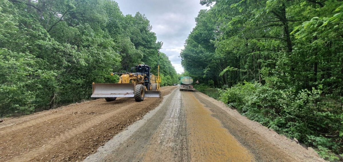 Este vorba despre lucrări de aducere la cotă a stratului de fundație din piatră spartă pe sectorul amintit, unde au fost dezafectate dalele din beton, operațiune premergătoare așternerii celor trei straturi de mixtură asfaltică.