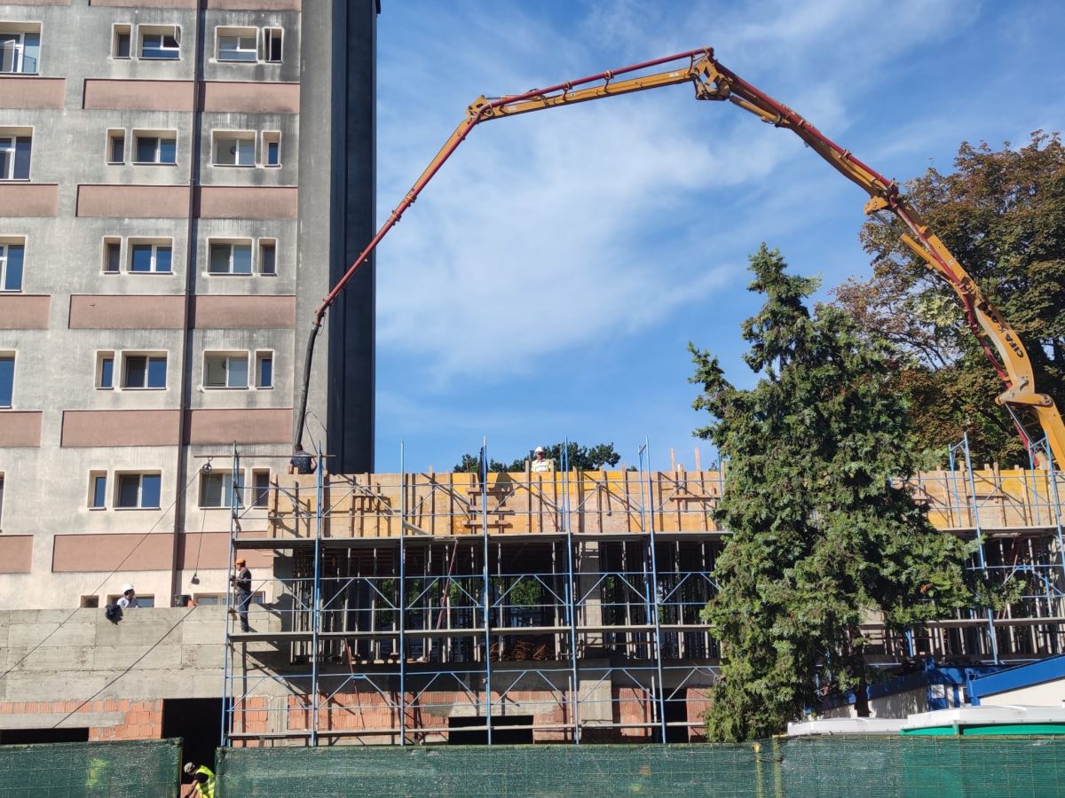 În aproximativ două-trei săptămâni vor fi finalizate lucrările la structura de rezistență. S-au început și compartimentările la clădirea existentă și de asemenea vor fi realizate în curând și finisajele. Săptămâna viitoare va fi montată și structura metalică a copertinei exterioare.