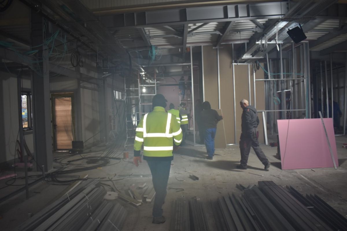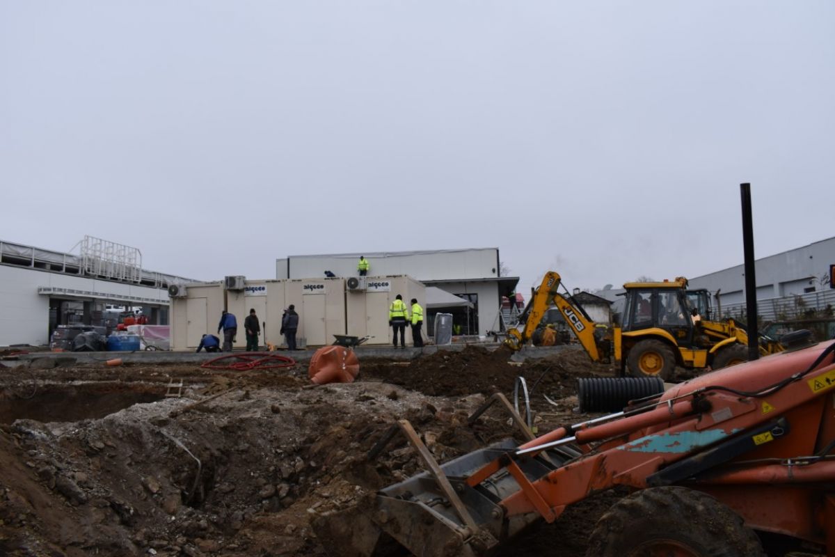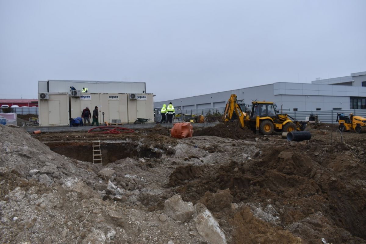 Pe șantier, în dimineața zilei de 23 noiembrie 2023 era un zumzet specific cu utilaje care efectuau săpăturile exterioare pentru amenajarea căilor de acces și echipaje de muncitori care aveau intervenții atât în exterior cât și în interior.