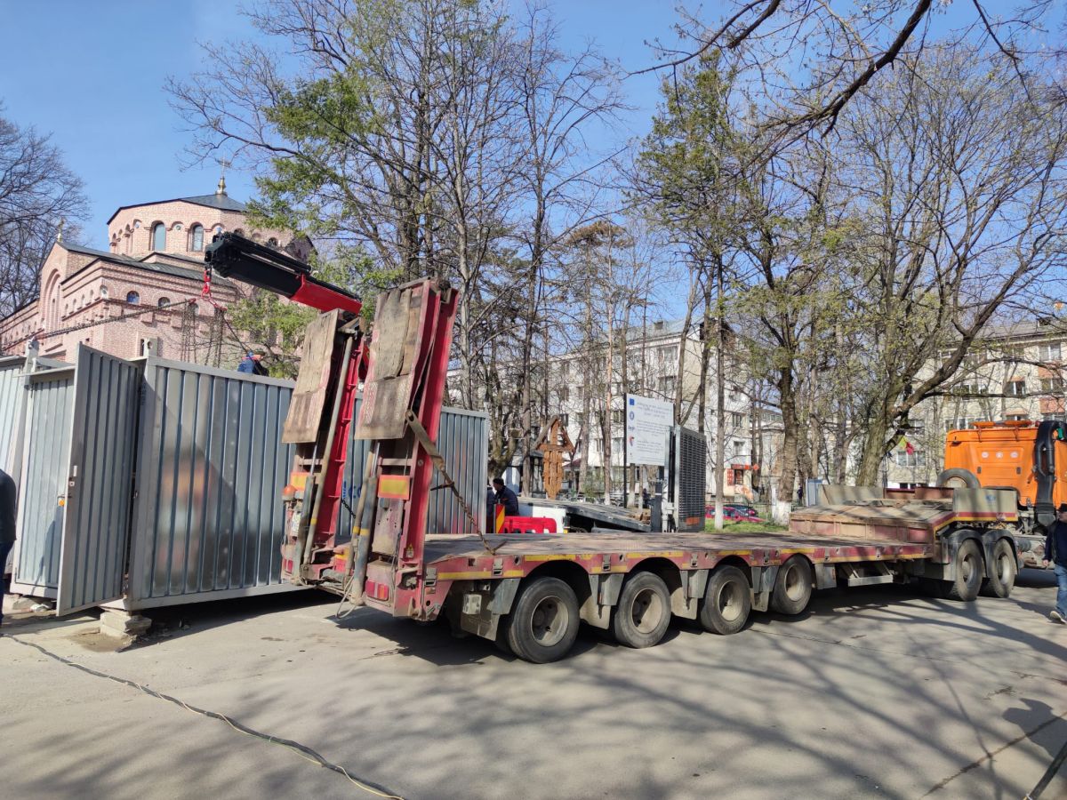 În cursul zilei de luni, 4 aprilie 2022, câteva din containerele firmei au fost ridicate de pe șantier pregătindu-se terenul pentru asfaltare.