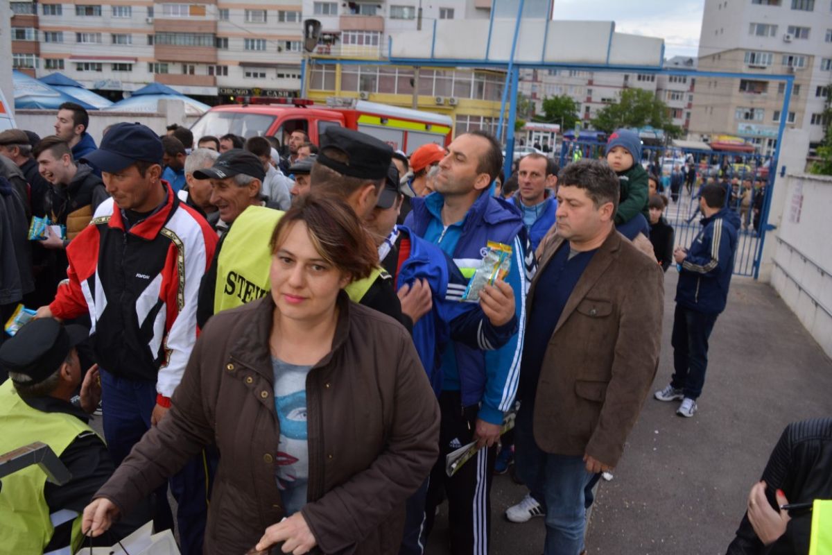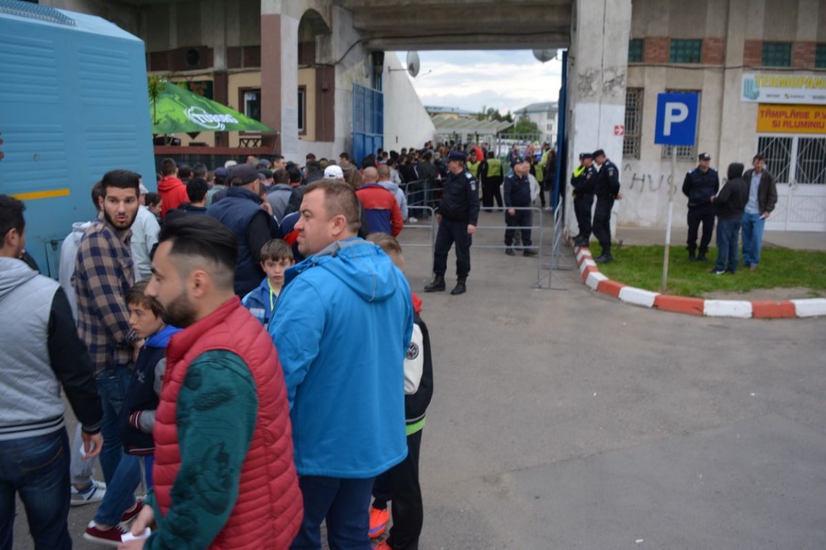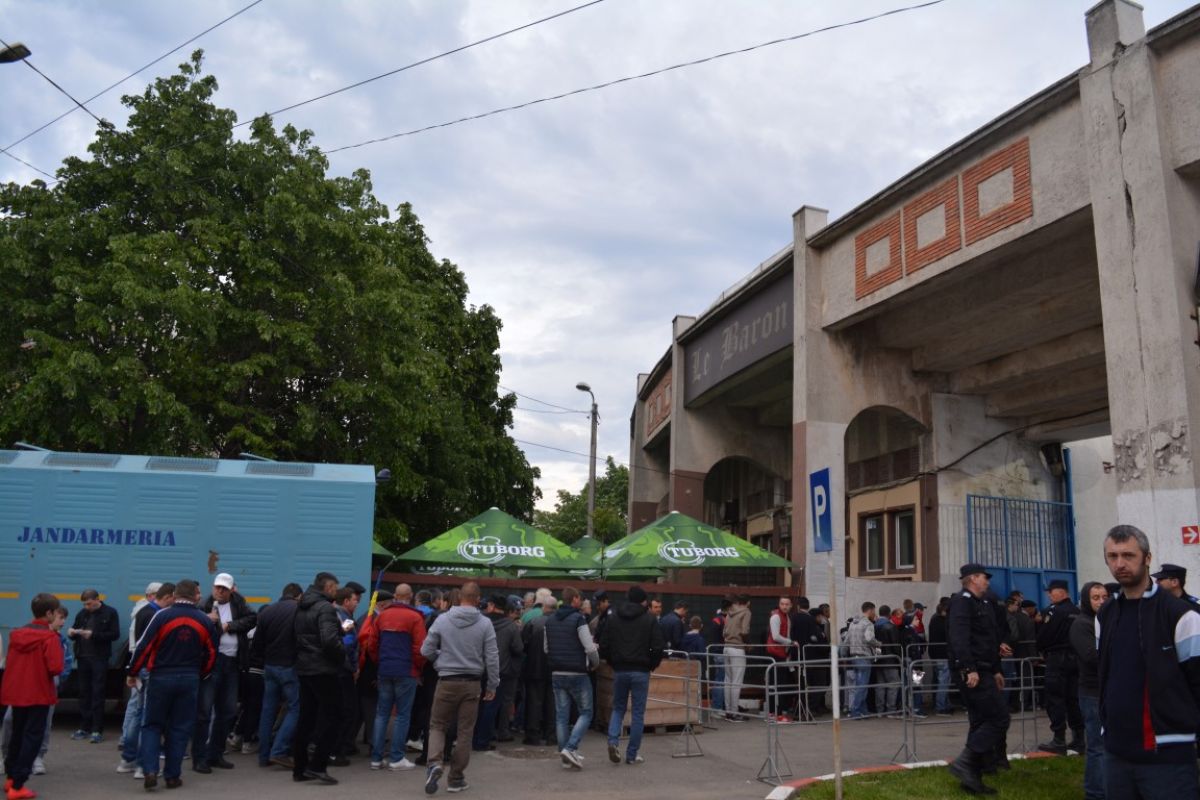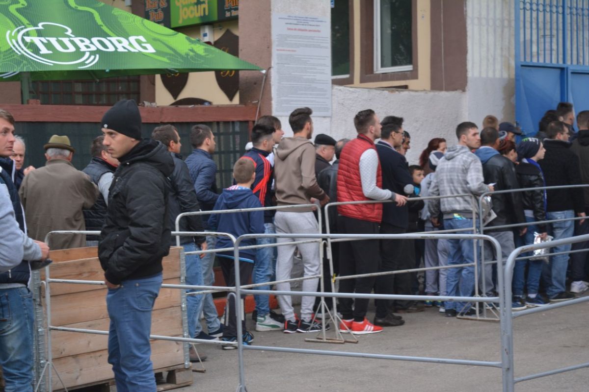 Afluenţa publicului a dus la formarea unor cozi uriaşe la intrările dinspre Calea Naţională. La ambele se intra pe serii întrucât, explicau jandarmii, dacă se permitea accesul prea multor persoane, lumea s-ar fi blocat la turnicheţi. Procedura a provocat nervii unor microbişti, care nu înţelegeau de ce sunt ţinuţi la porţile arenei. Cu toate acestea, pe Stadionul Municipal asistenţa este una relativ redusă. Peluzele Ion Bordeanu şi Marian Crudu sunt aproape goale, tribunele fiind în schimb aproape pline. Şi tribuna oficială, spre deosebire de alte confruntări, are o mulţime el locuri goale. (S.B.)
