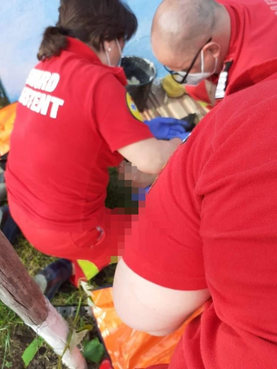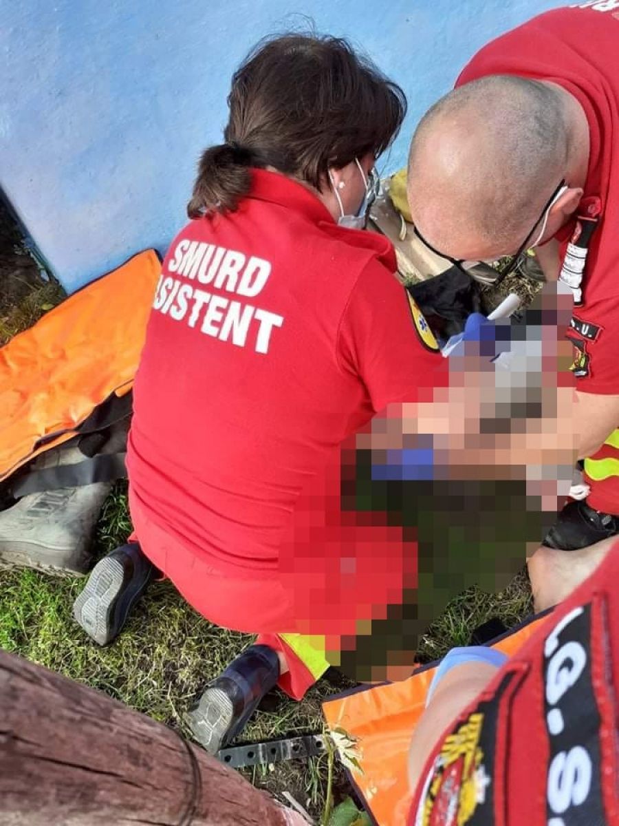 Pe toată durata operațiunii, victima a fost conștientă. Aceasta a primit îngrijiri medicale la fața locului de la echipajul de terapie intensiva mobilă SMURD.