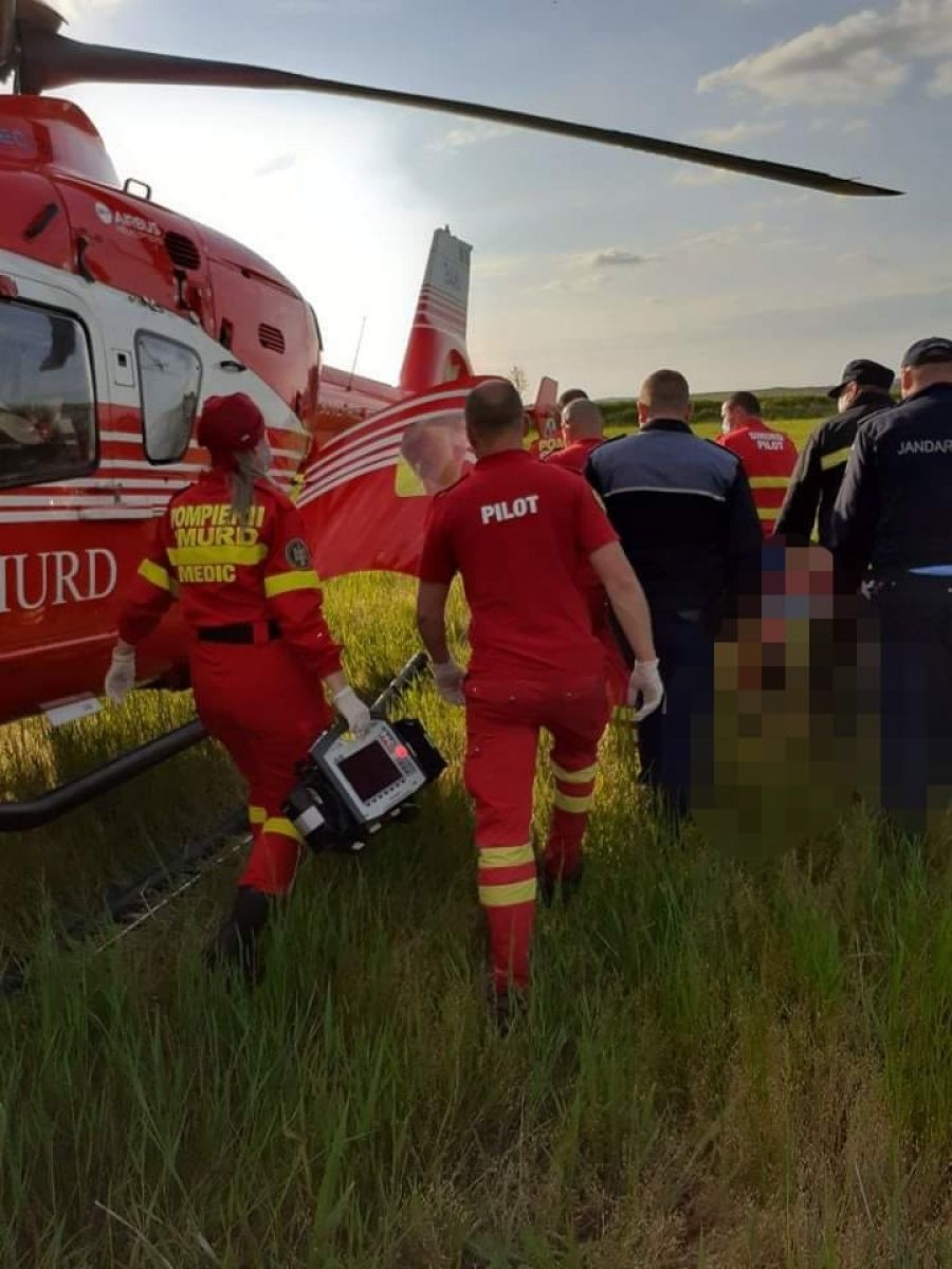 Ulterior, bărbatul a fost preluat de elicopterul SMURD, care a aterizat pe un câmp din localitate și apoi l-a transportat la un spital de specialitate din Iași.