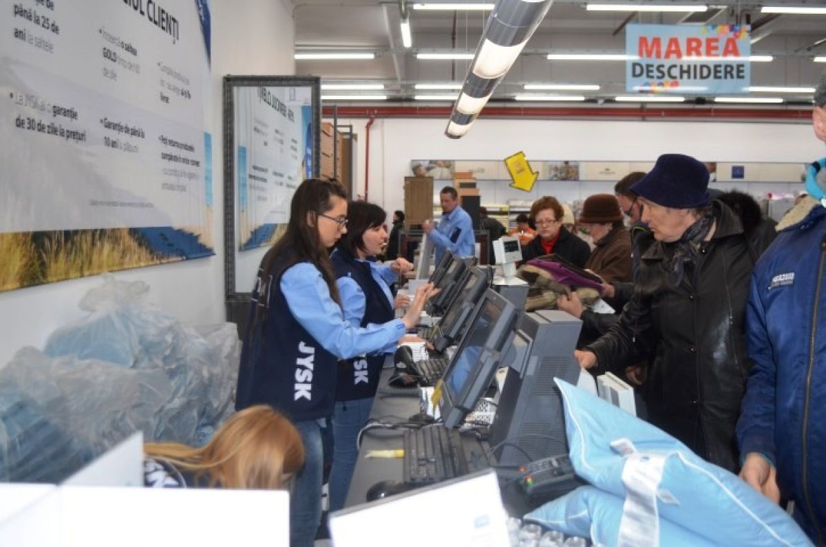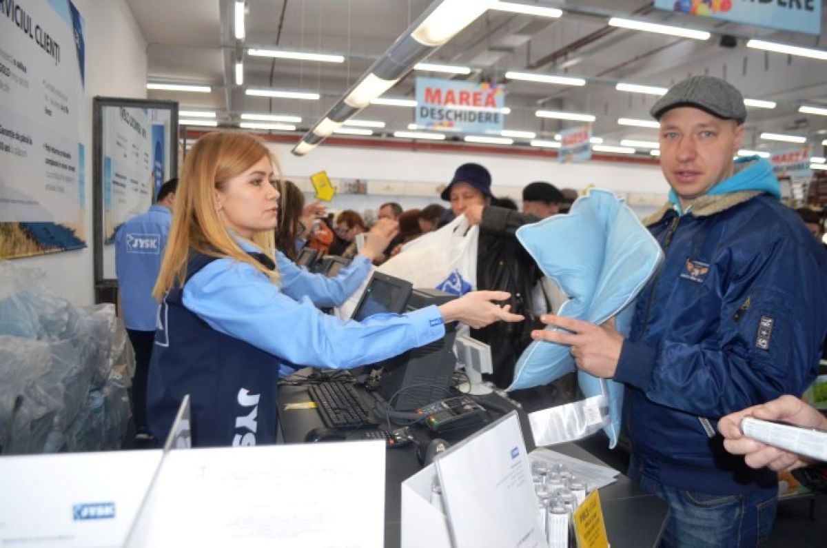 Așa cum se obișnuiește la români, au fost păcăliți de ideea prin care primul intrat în magazin primește un lucru gratuit. Nu a fost așa. Surpriza reprezentanților Jysk a constat în oferirea unei perne gratuite la cumpărături de minimum 50 de lei.