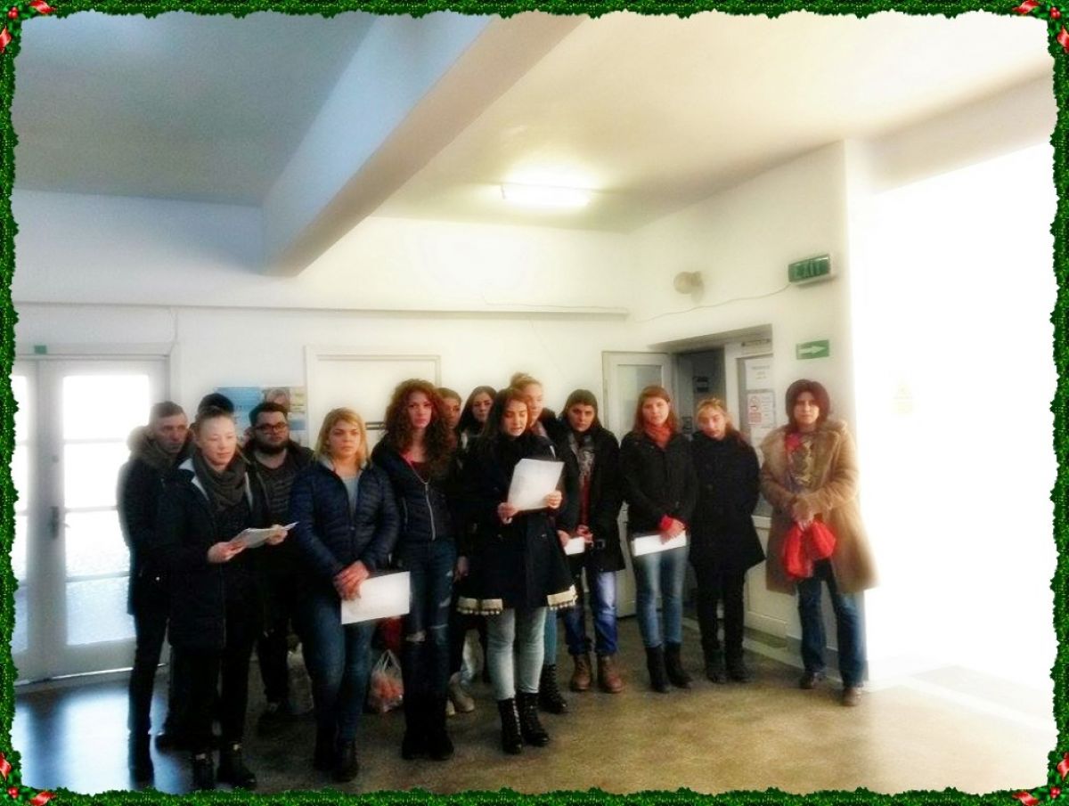 La iniţiativa clasei a XII-a A, voluntarii liceului au pregătit pachete cu fructe, dulciuri şi obiecte de îmbrăcăminte, în total fiind colectate 100 de pachete. De asemenea, un recital de colinde tradiţionale şi internaţionale a fost susţinut cu ocazia acestei minunate vizite.