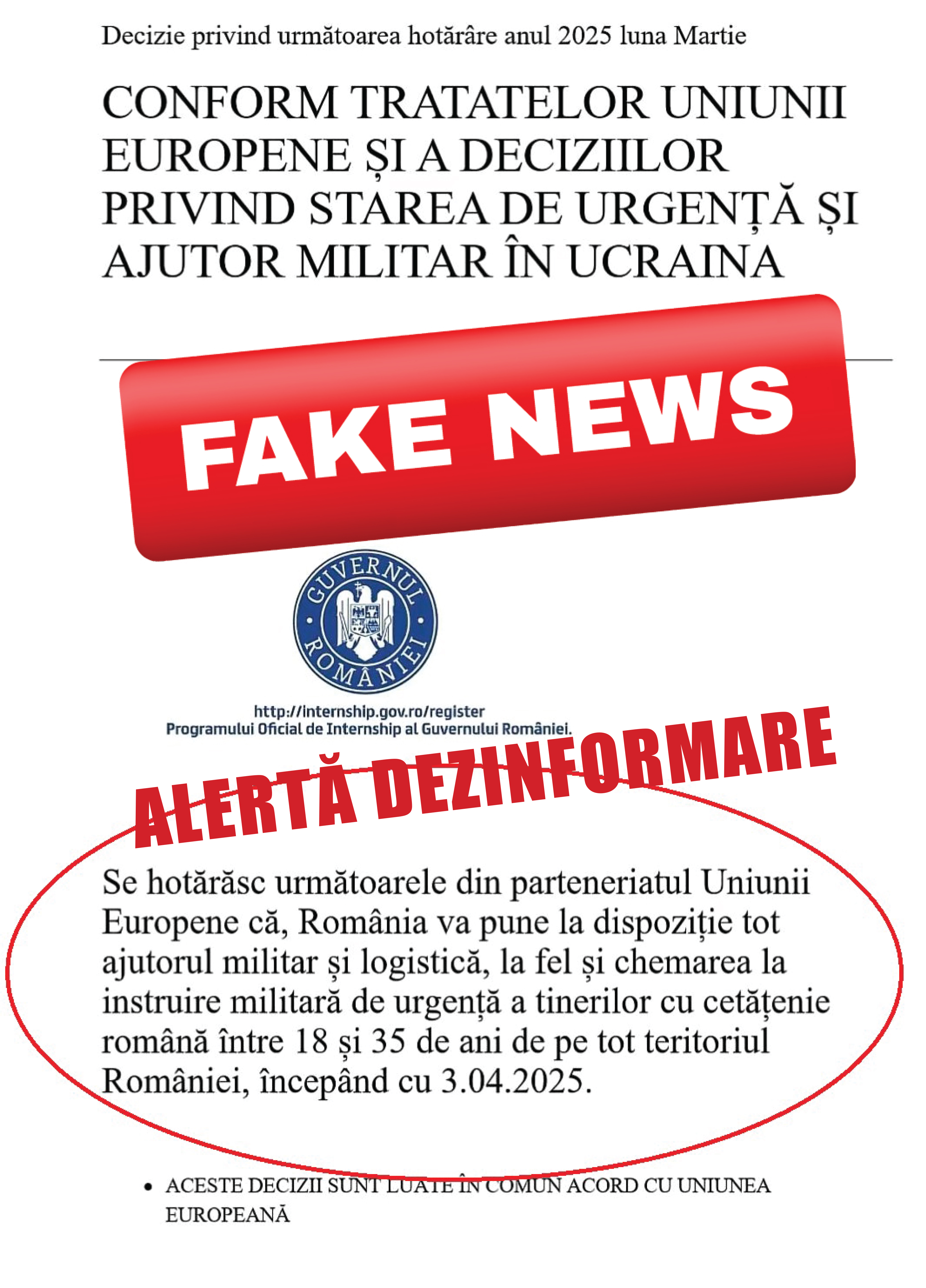 Informațiile privind așa-zisa „participare a României la un conflict militar” sunt în totalitate false și fac parte dintr-o campanie de dezinformare.