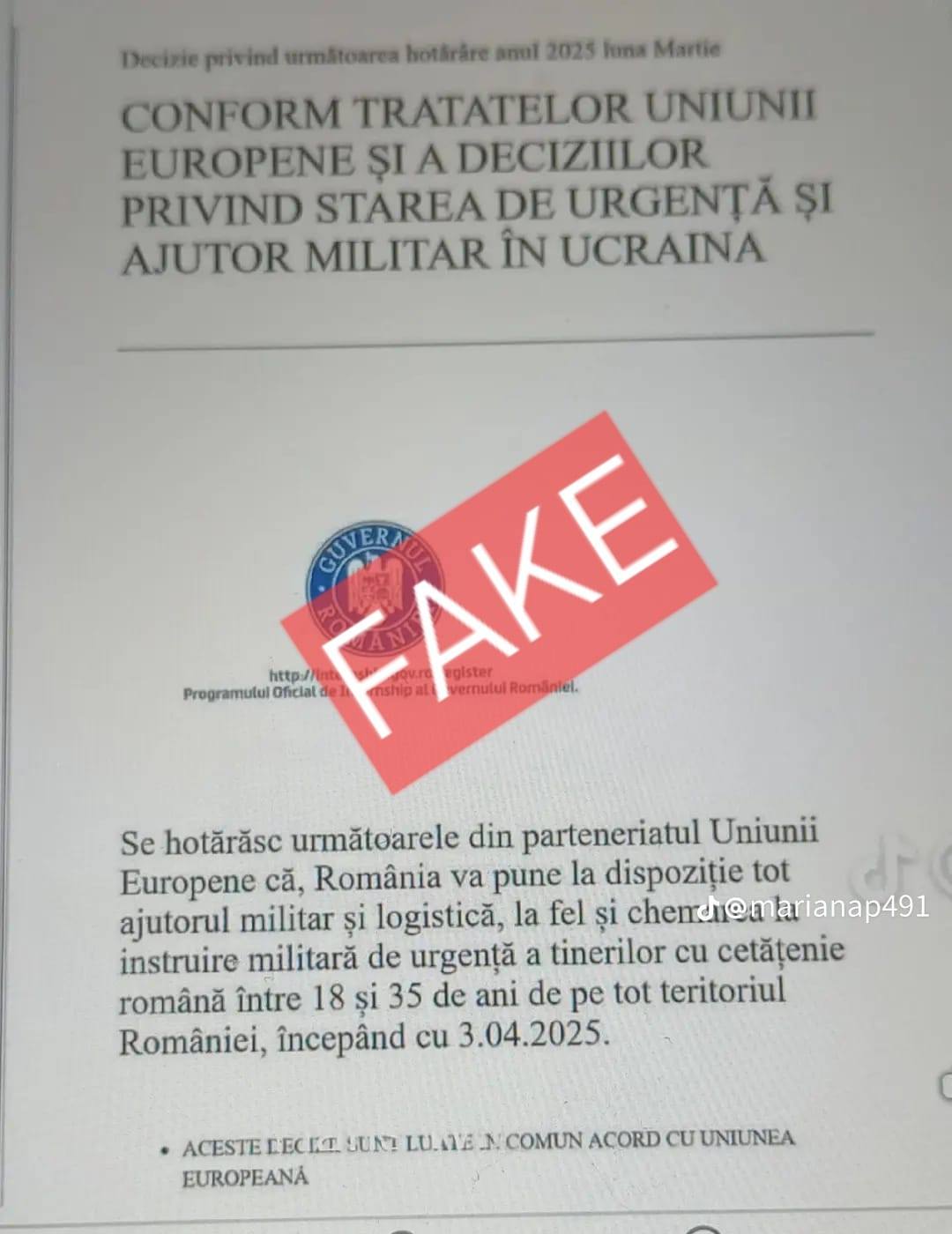 Subliniem că „documentele” citate sunt falsuri, autorii folosindu-se de sigla utilizată într-un comunicat de presă real, remis public în legătură cu un program de internship guvernamental.