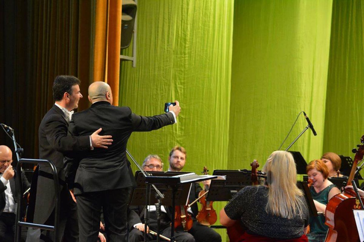 Debordând de voie bună, glumind permanent cu publicul – în special cu domnișoarele – artistul invitat nu s-a lăsat până nu a fost sigur că pleacă de la Botoșani cu fotografii de pe scenă. Și-a făcut selfie cu sala, a apelat la dirijor pentru a imortaliza momentul, s-a amuzat teribil când Marcel Holiartoc a setat greșit telefonul făcător de fotografii.