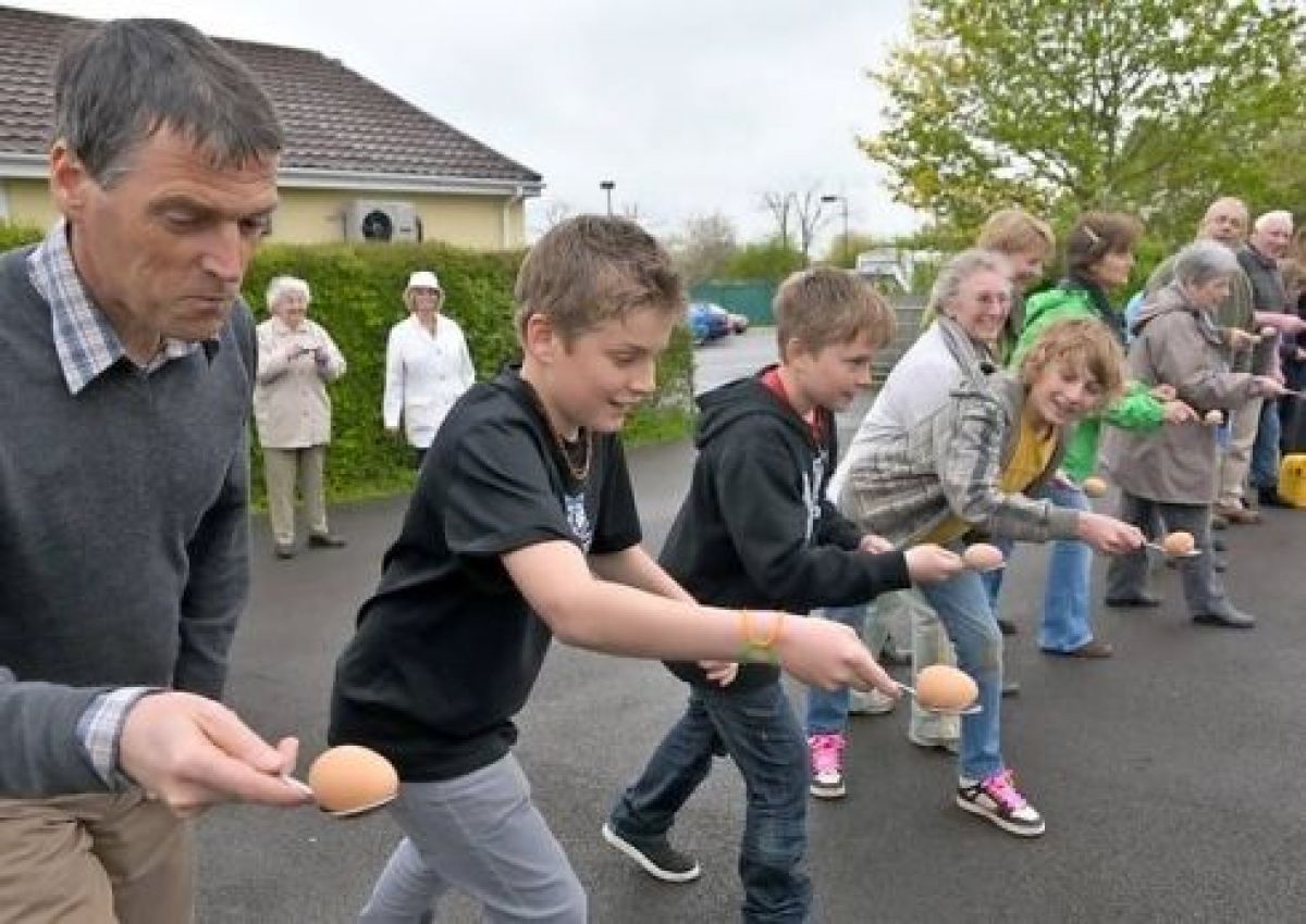 • Concurs de tras la parâmă și întreceri de alergări în sac și cu oul în lingură, comercializări de produse culinare, carusele, tobogane și balansoare.
