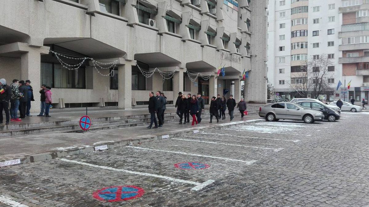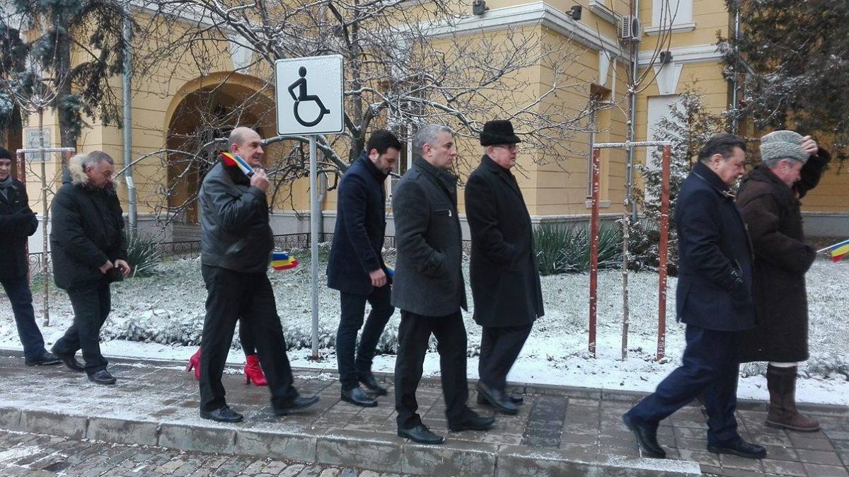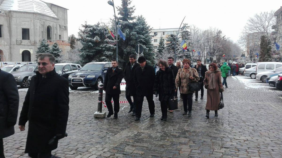 Partidele politice au venit cu stegulețe mai mici sau mai mari pe care le flutură cu mândrie. În aceste momente coloana de oficialități s-a pus în mișcare și se deplasează către Centrul Istoric al orașului.