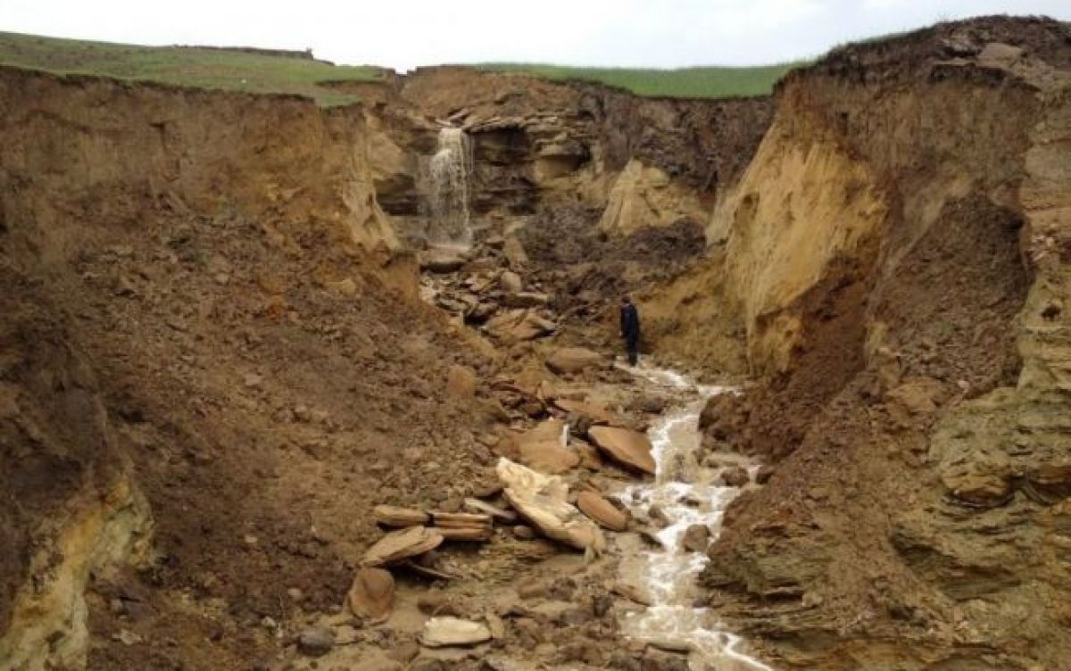 Zeci de metri cubi de pământ s-au prăbuşit din malurile canionului, accentuând erodarea solului, după ce în ultimele aproape cinci luni de la apariţia craterului imens autorităţile nu au reuşit să pornească nici un fel de lucrări de refacere a scurgerii şi de reabilitare a terenului luat de ape.