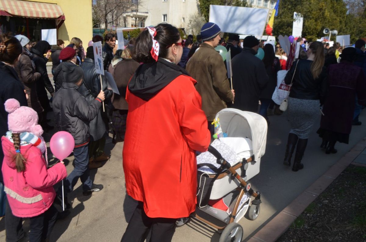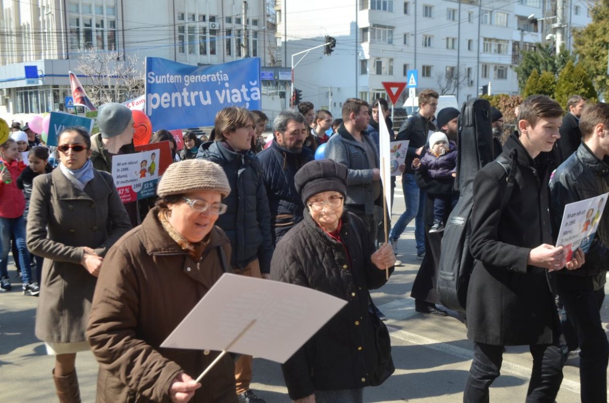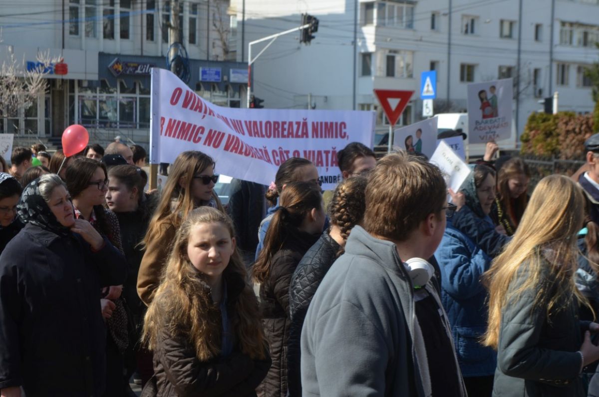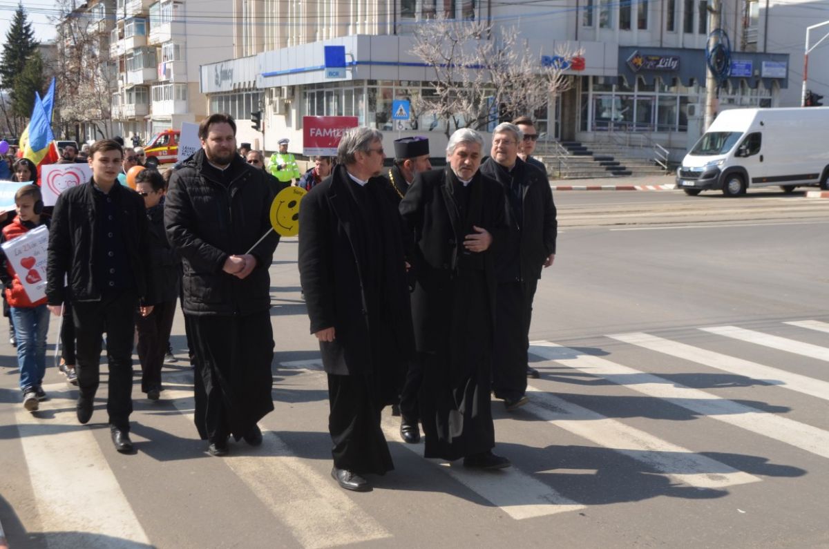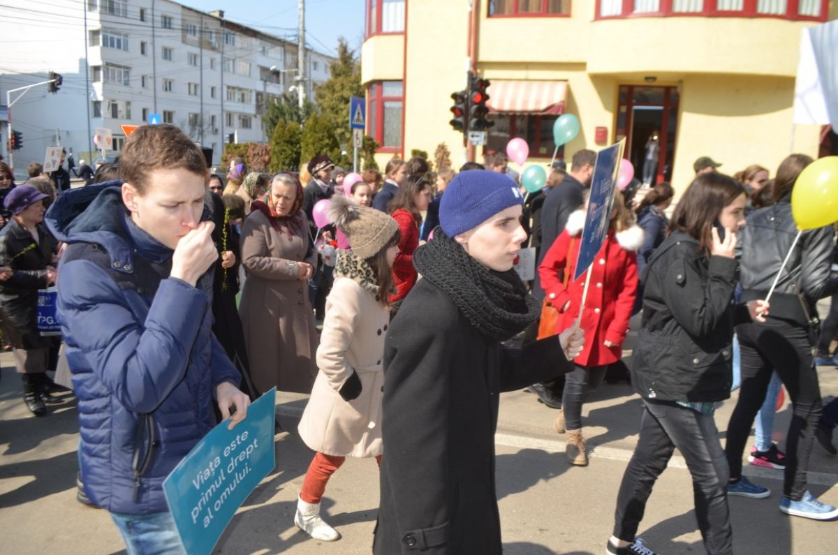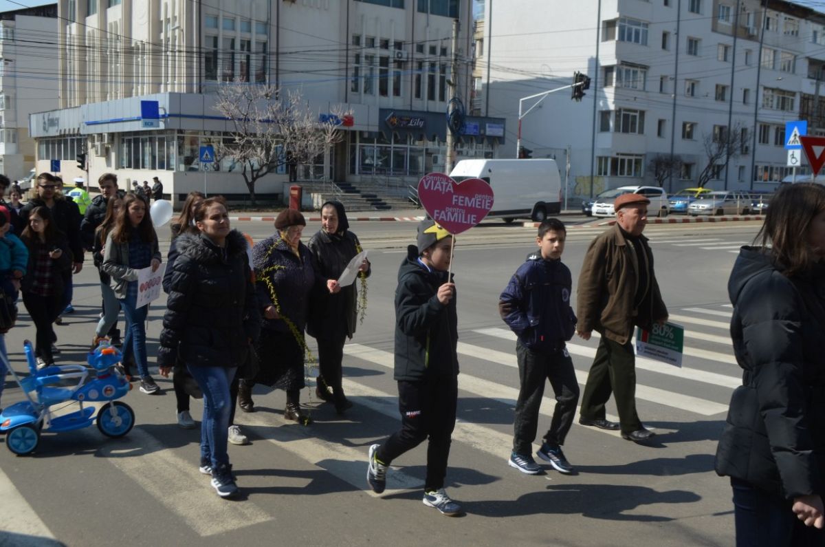 Marșul pentru viață a scos în stradă copii, femei cu cărucioare, pensionari sau familii unite în fața bunului Dumnezeu. Au pornit de la Biserica Buna Vestire de unde în cor, din glasurile tuturor a răsunat ”Tatăl nostru, care ești în ceruri, sfințească-se numele Tău…”.