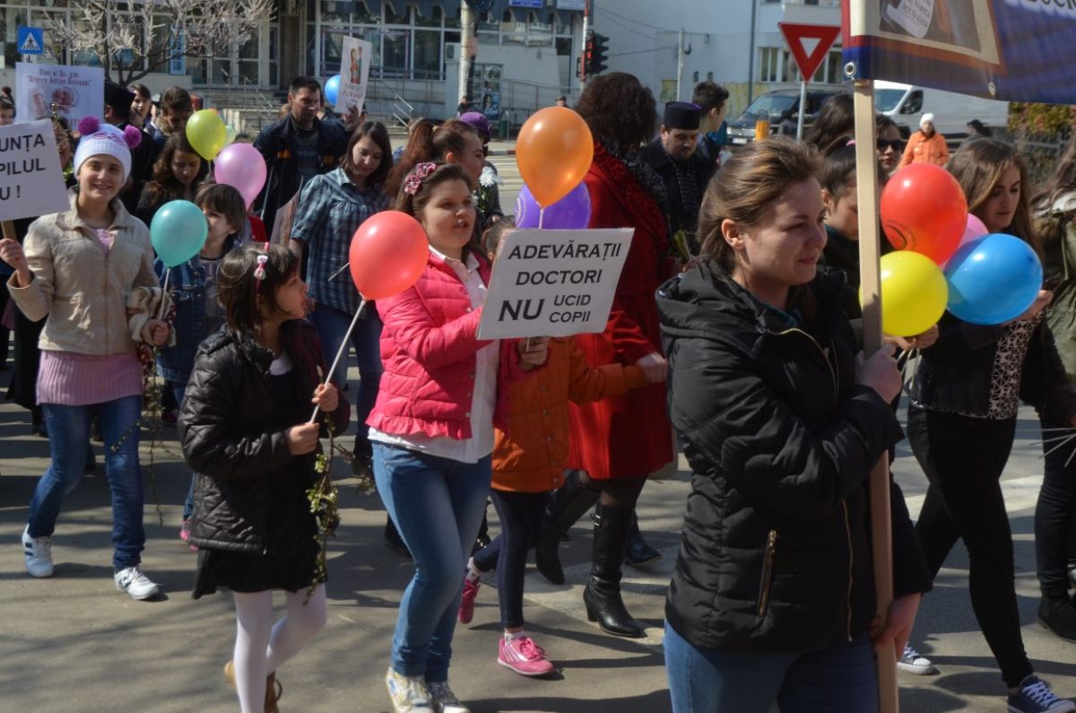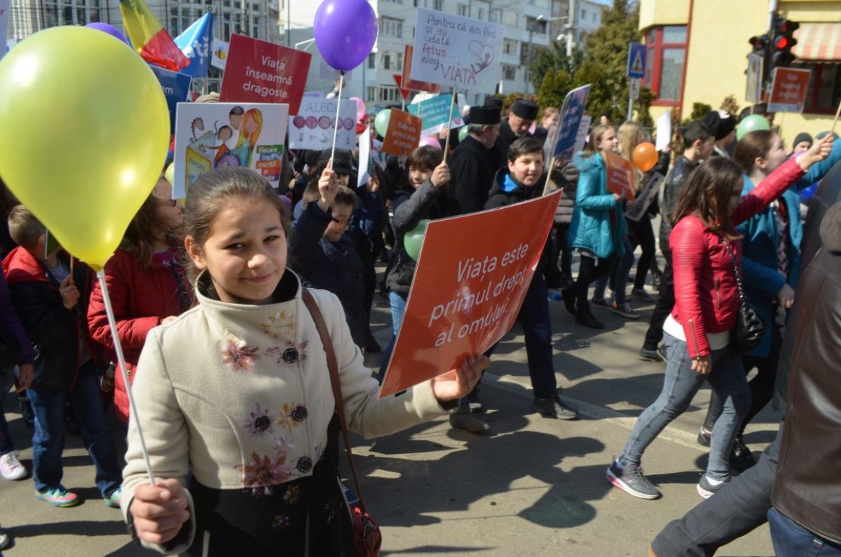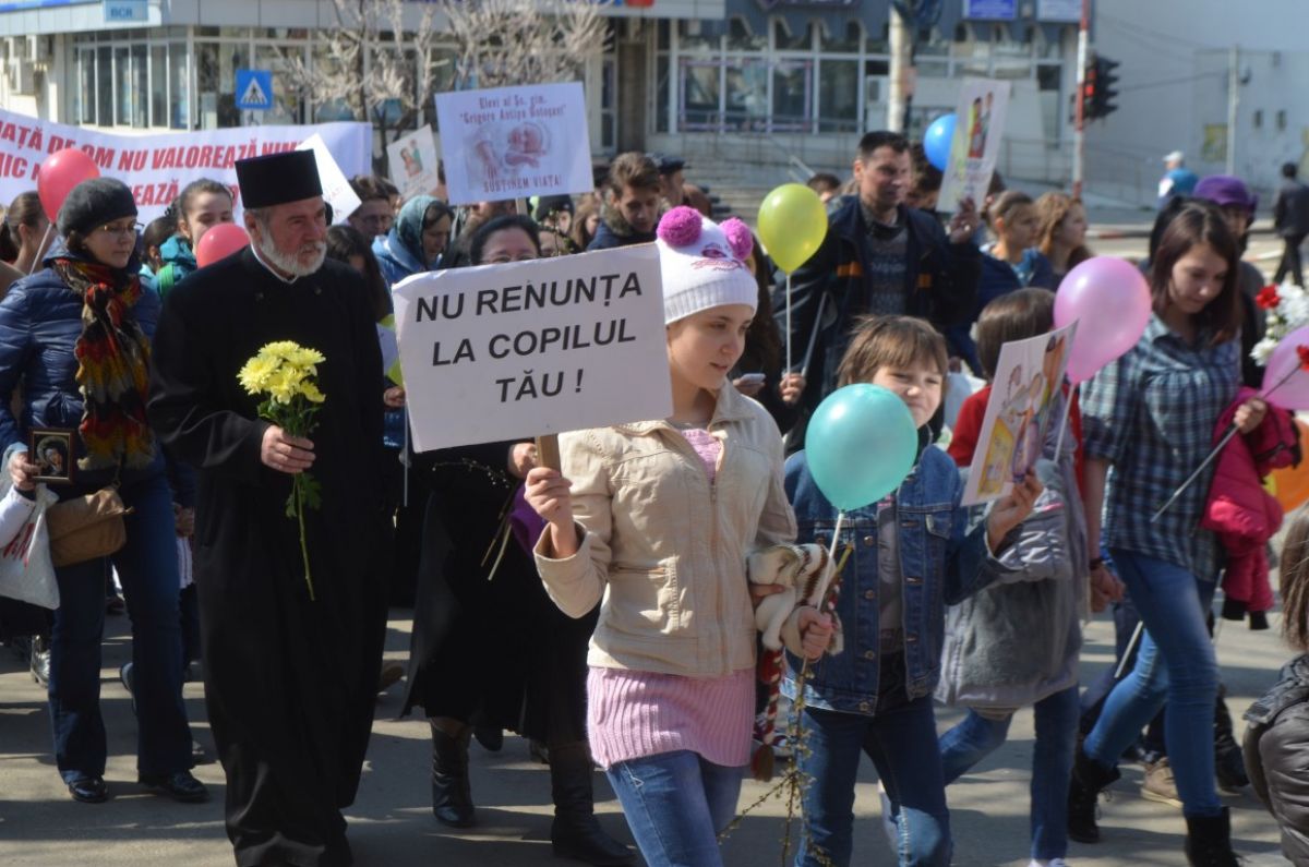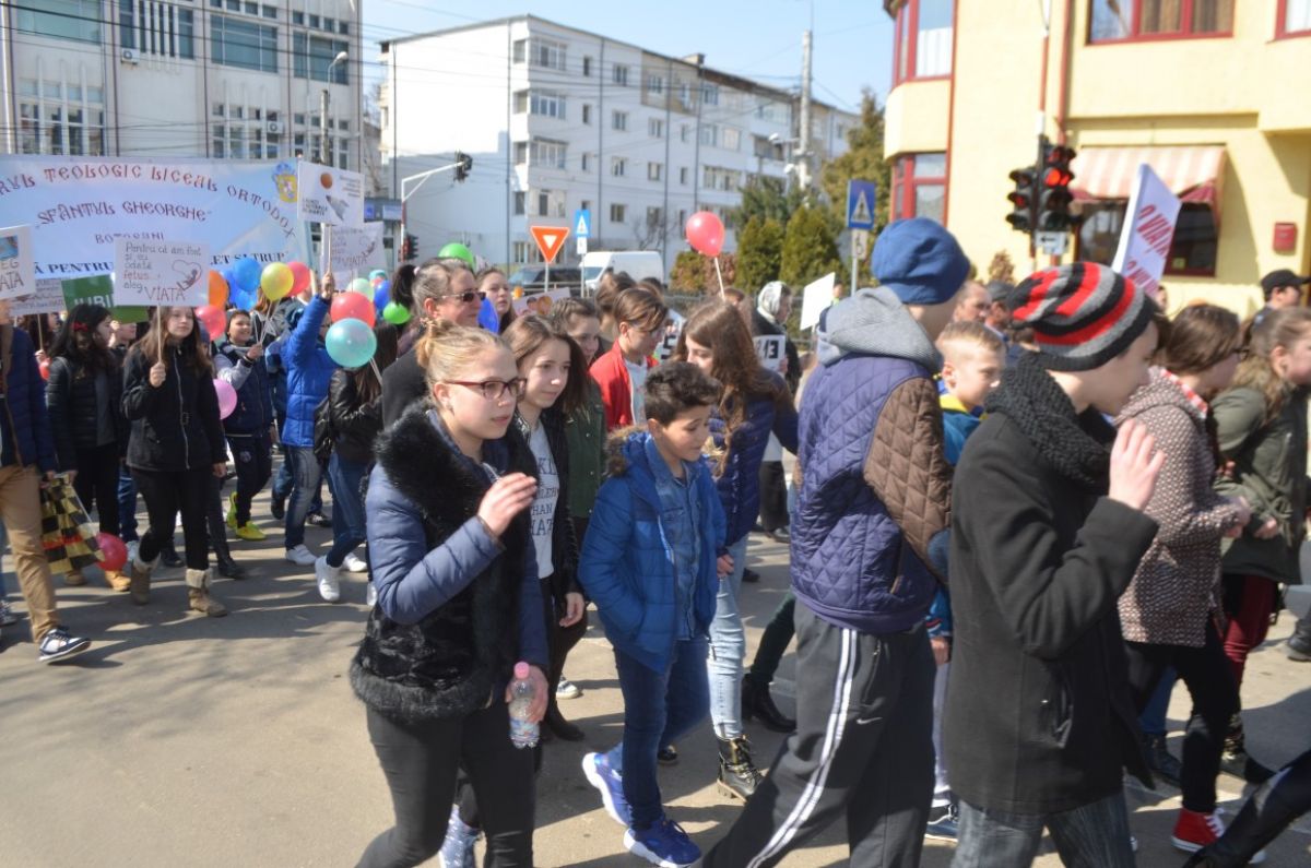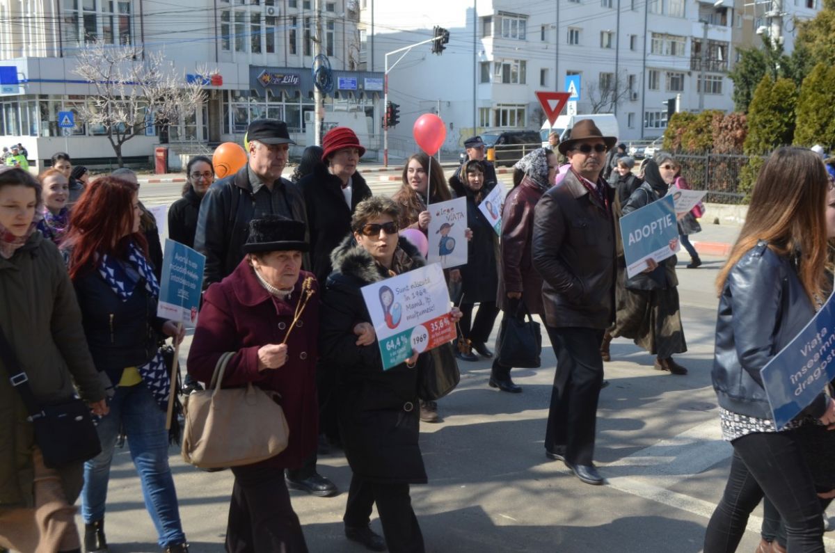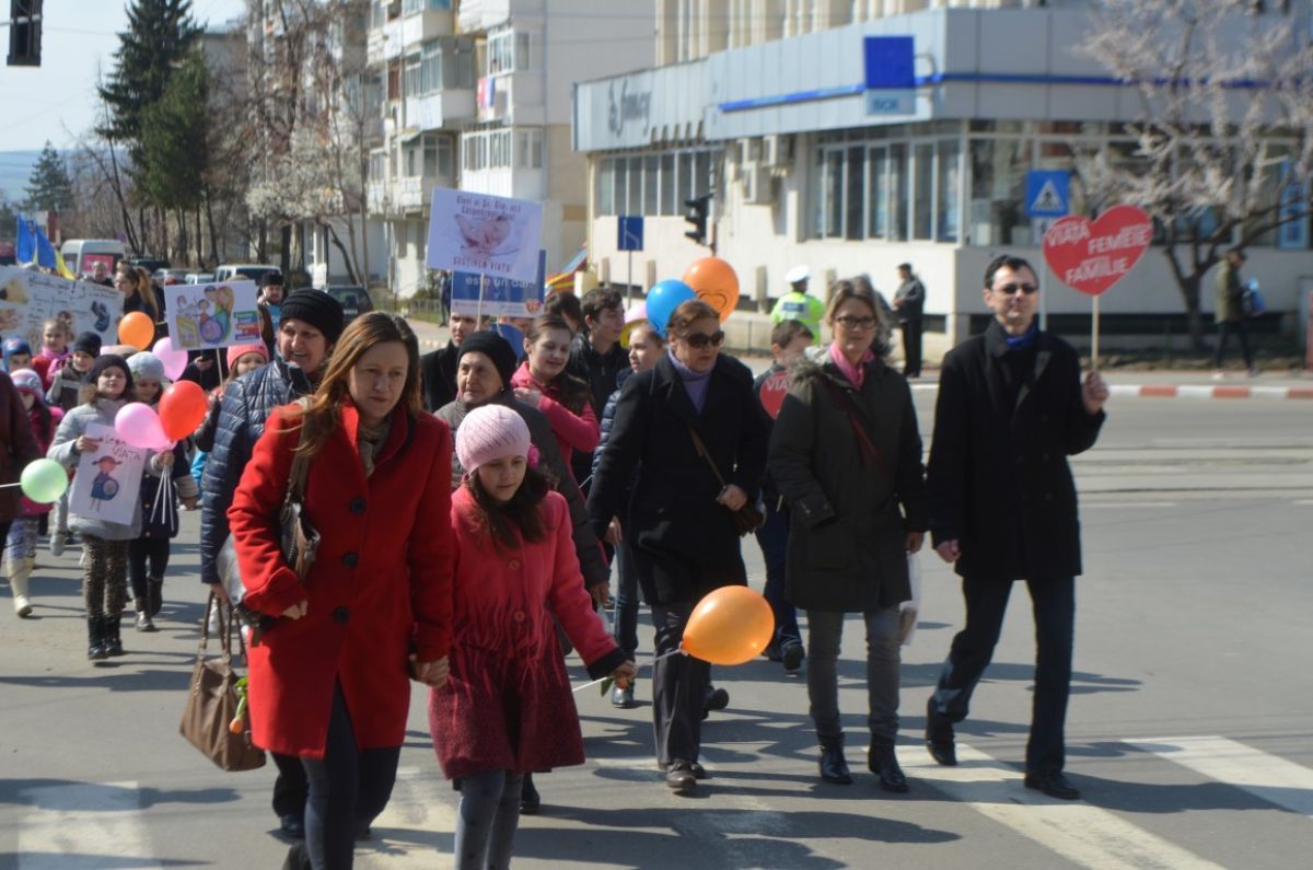 Marșul pentru viață a scos în stradă copii, femei cu cărucioare, pensionari sau familii unite în fața bunului Dumnezeu. Au pornit de la Biserica Buna Vestire de unde în cor, din glasurile tuturor a răsunat ”Tatăl nostru, care ești în ceruri, sfințească-se numele Tău…”.