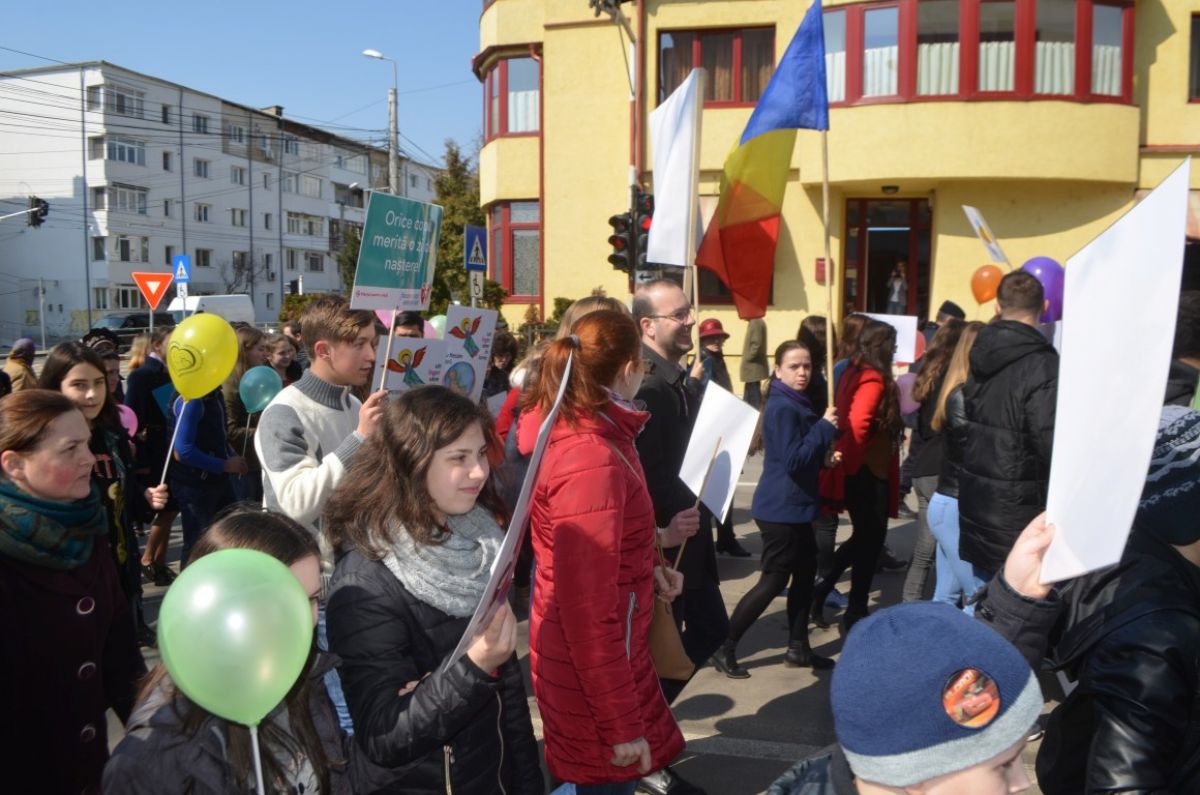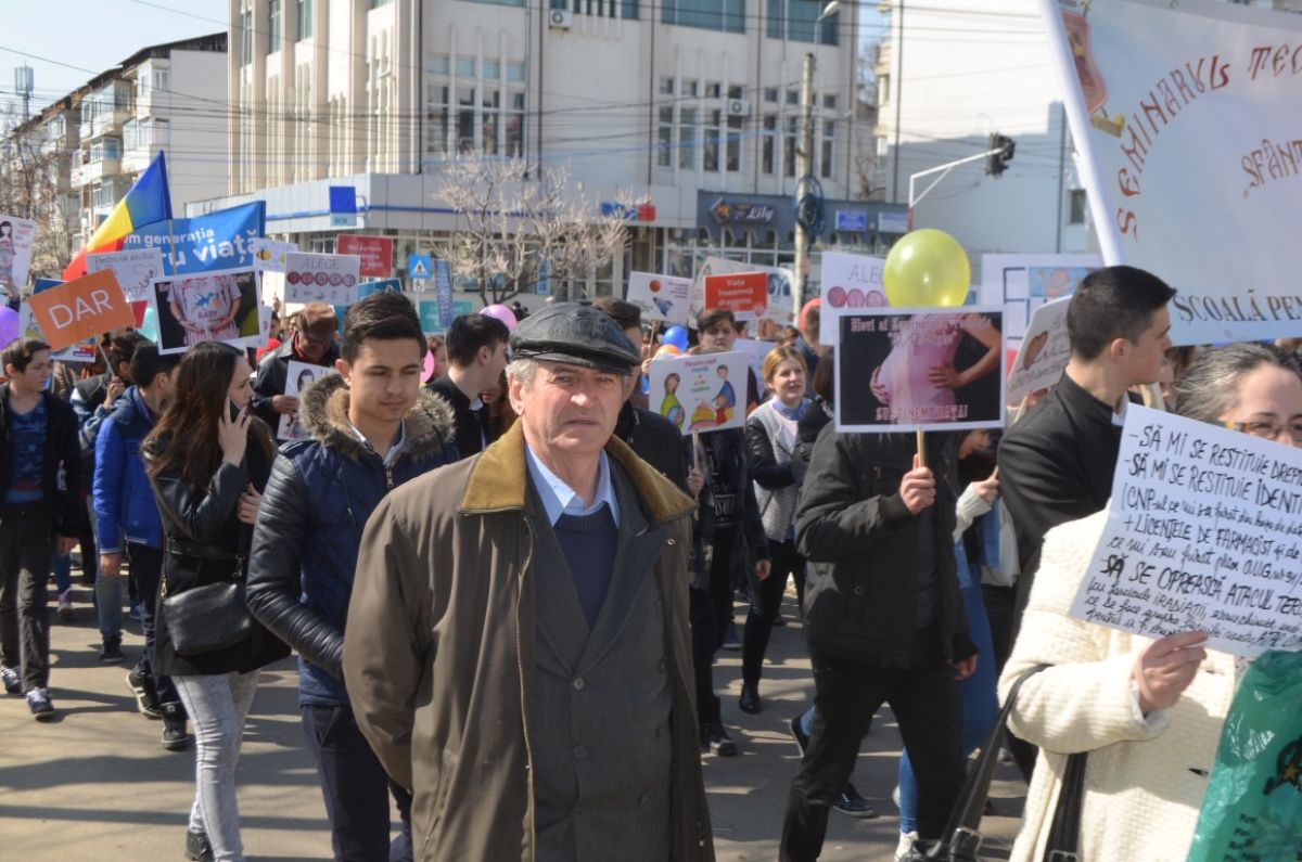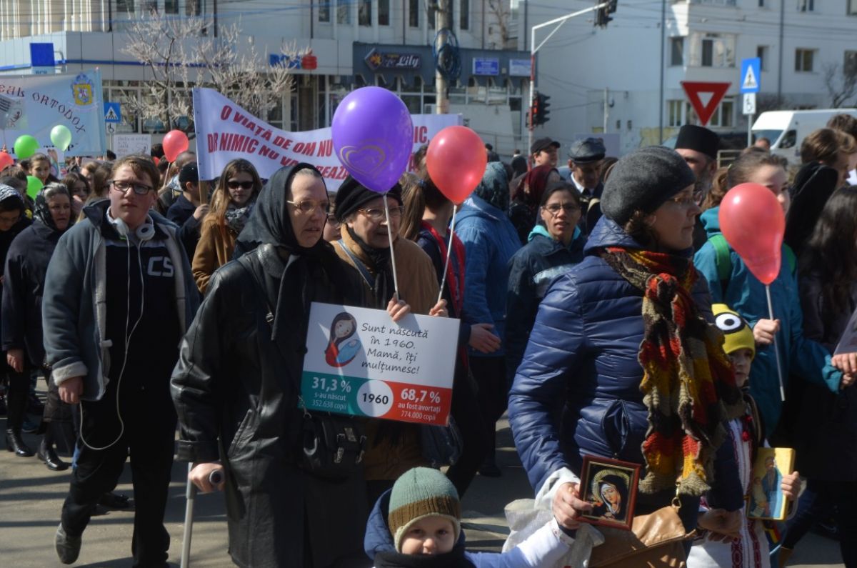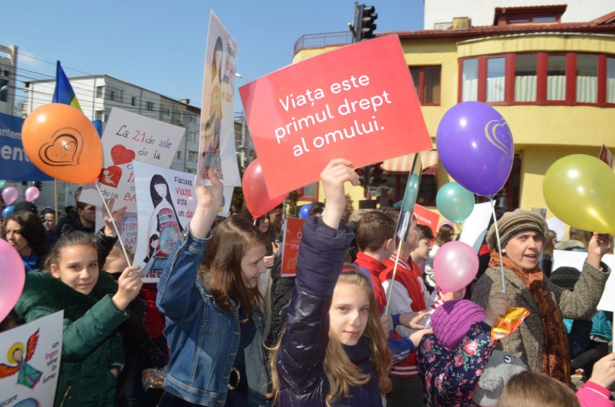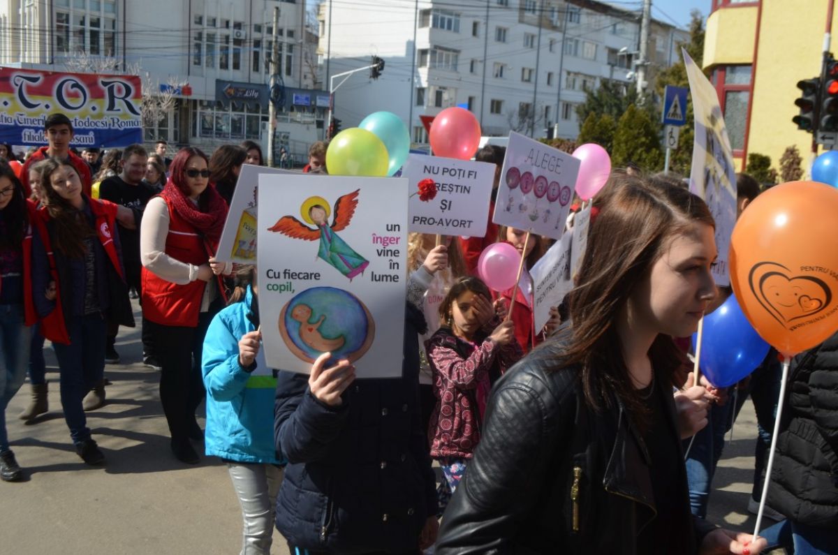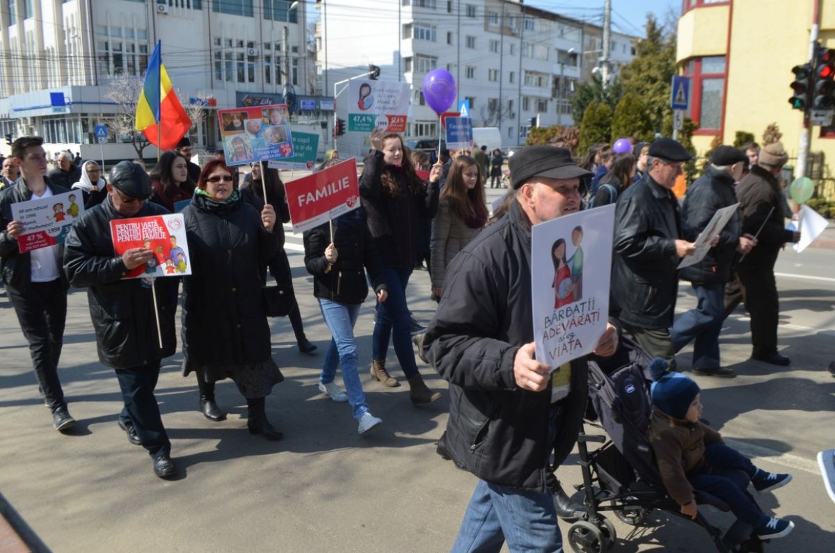 Marșul pentru viață a scos în stradă copii, femei cu cărucioare, pensionari sau familii unite în fața bunului Dumnezeu. Au pornit de la Biserica Buna Vestire de unde în cor, din glasurile tuturor a răsunat ”Tatăl nostru, care ești în ceruri, sfințească-se numele Tău…”.