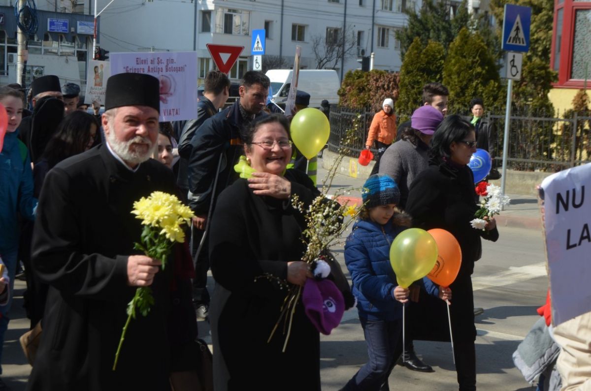 Câți au fost de fapt oamenii care au ieșit în stradă pentru viață, nimeni nu i-a numărat. Câteva sute, se prea poate să fi fost cinci sau o mie de botoșăneni. Vârsta nu a contat, pentru că au fost copii cu râsete zglobii care fluturau baloane și pancarte cu mesaje absolut emoționante. Femeile mai ales, în fața impresionantei imagini a marșului, au început să lăcrimeze.