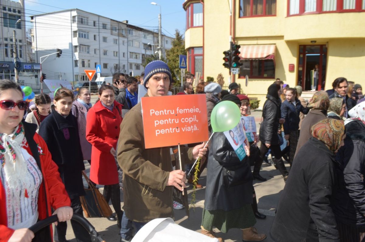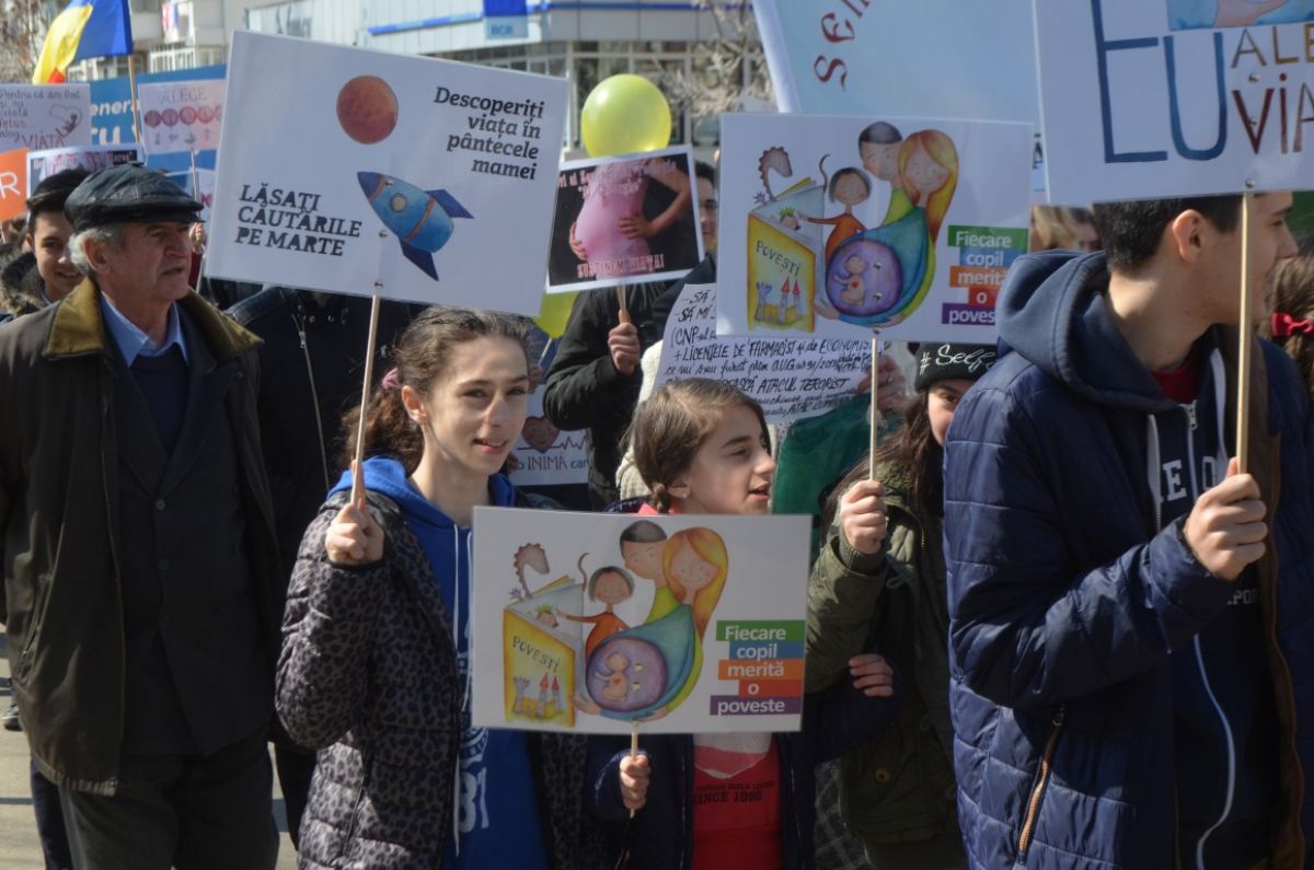 ”Adevărații doctori nu ucid copii”, ”Nu renunța ca copilul tău”, ”Descoperiți viața în pântecele mamei, lăsați căutările pe Marte”, ”Pentru că am fost odată fetus, aleg viața”, ”Viața este primul drept al omului”, ”Viața înseamnă dragoste”, ”Noi suntem generația pentru viață”, ”Pentru femeie, pentru copil, pentru viață”.