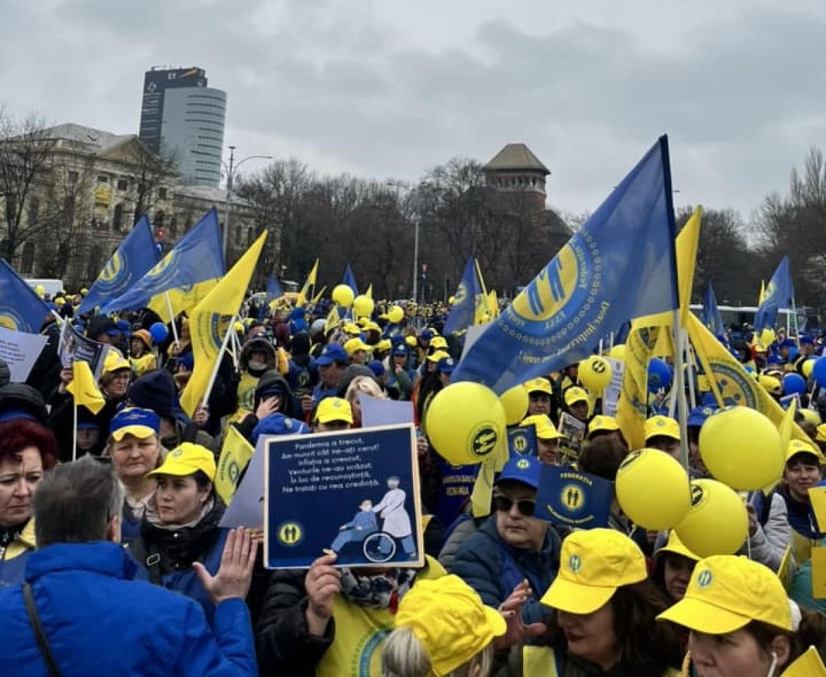 Peste 5.000 de angajați din Sănătate protestează astăzi, 11 martie 2024, la București.