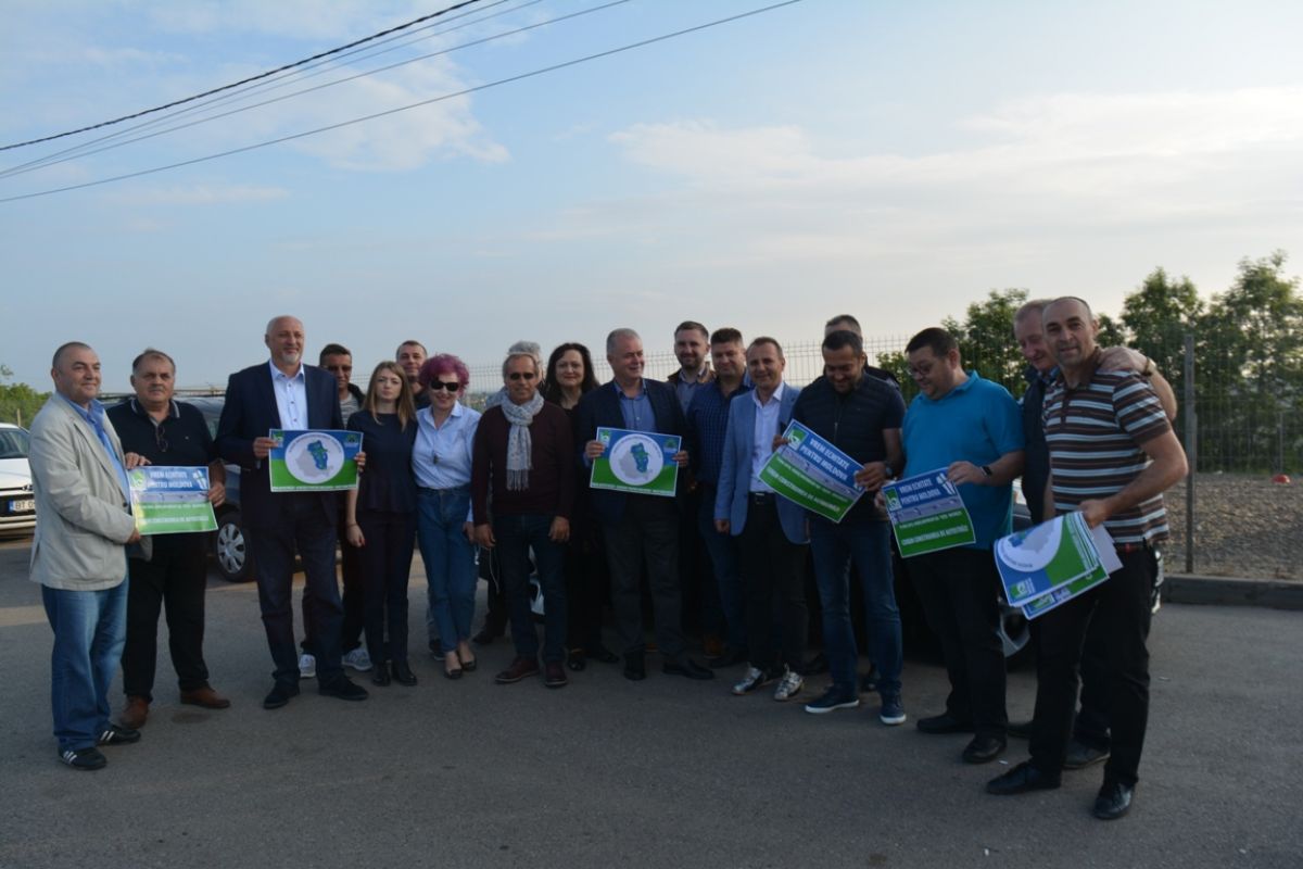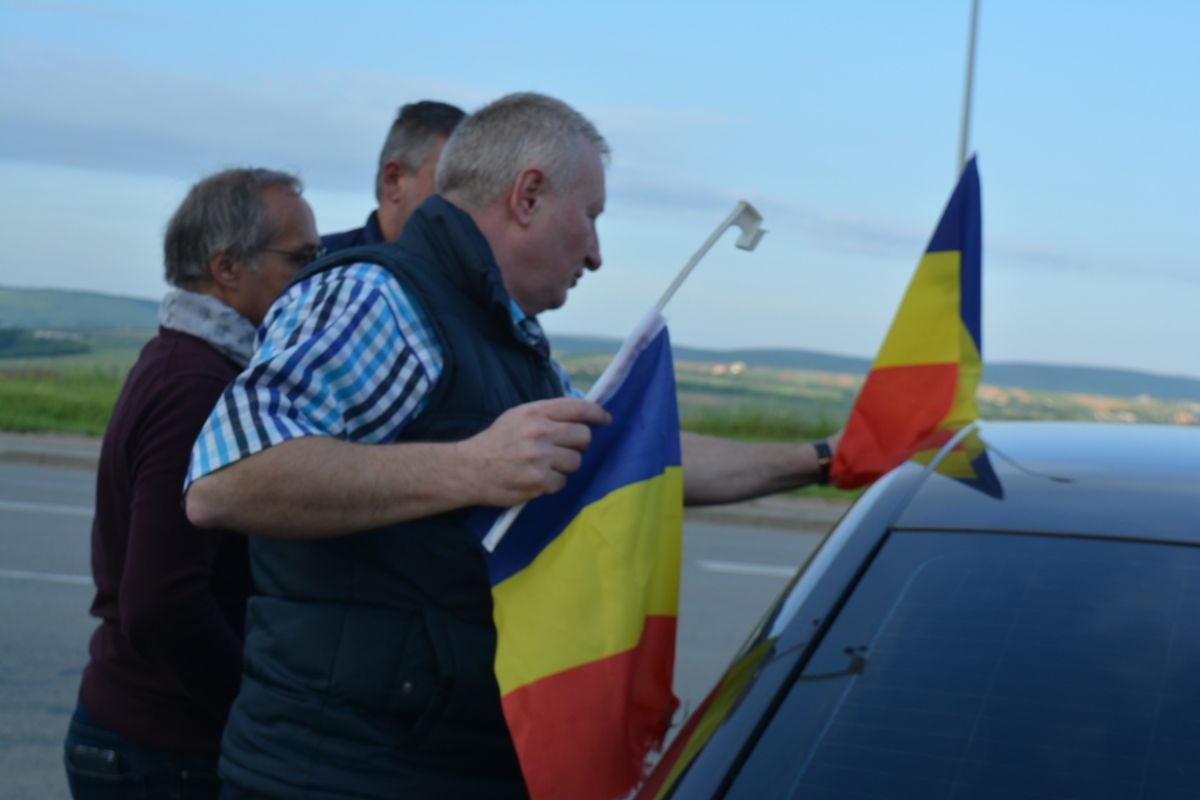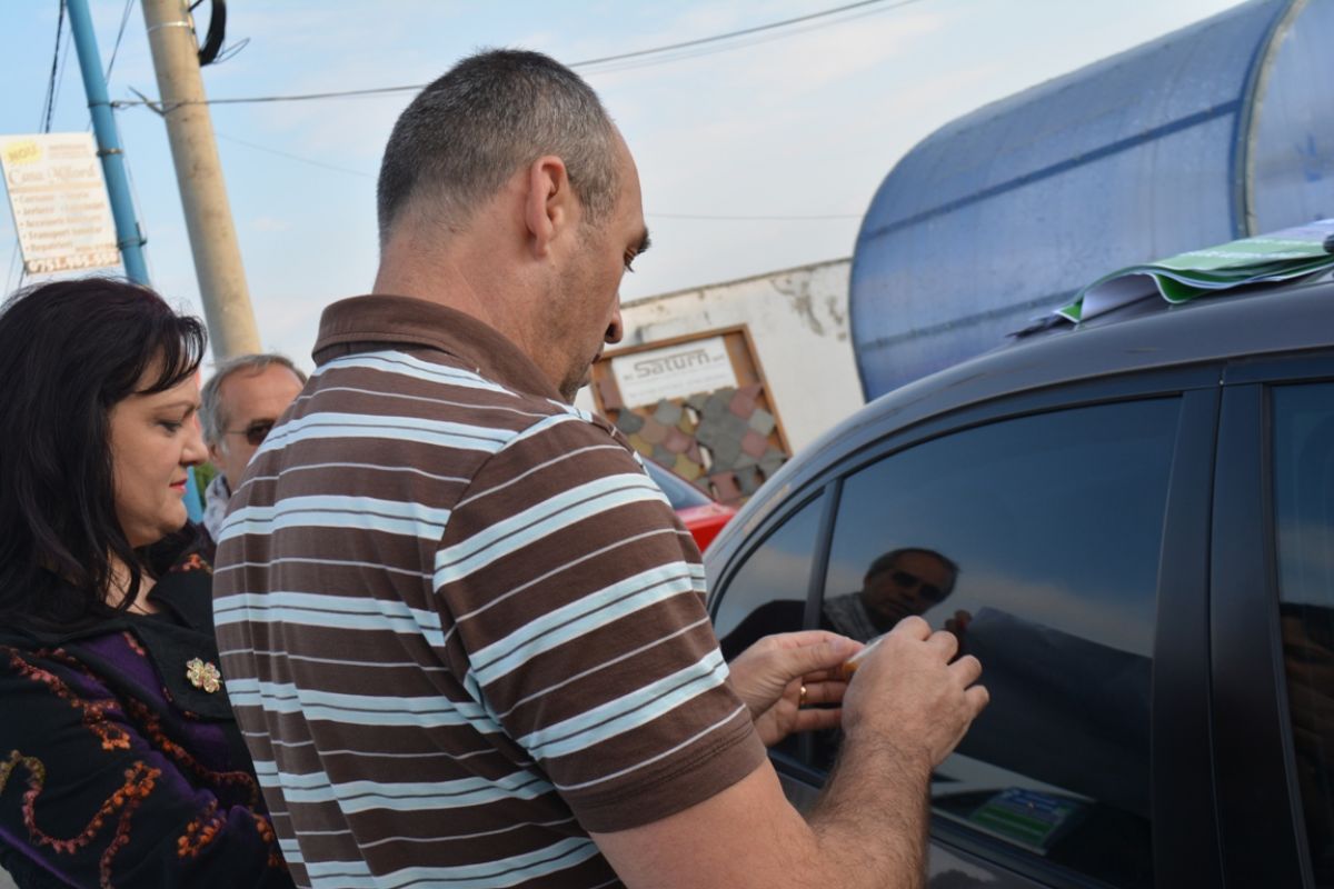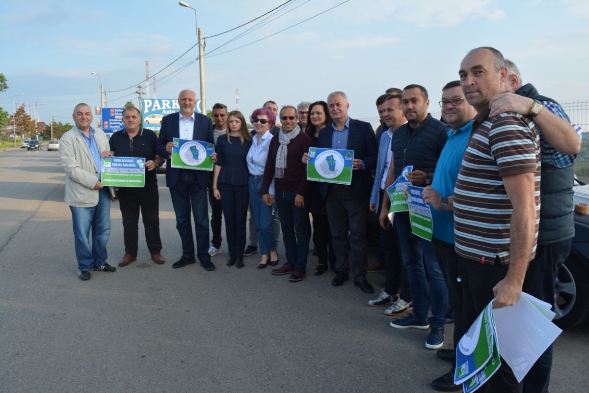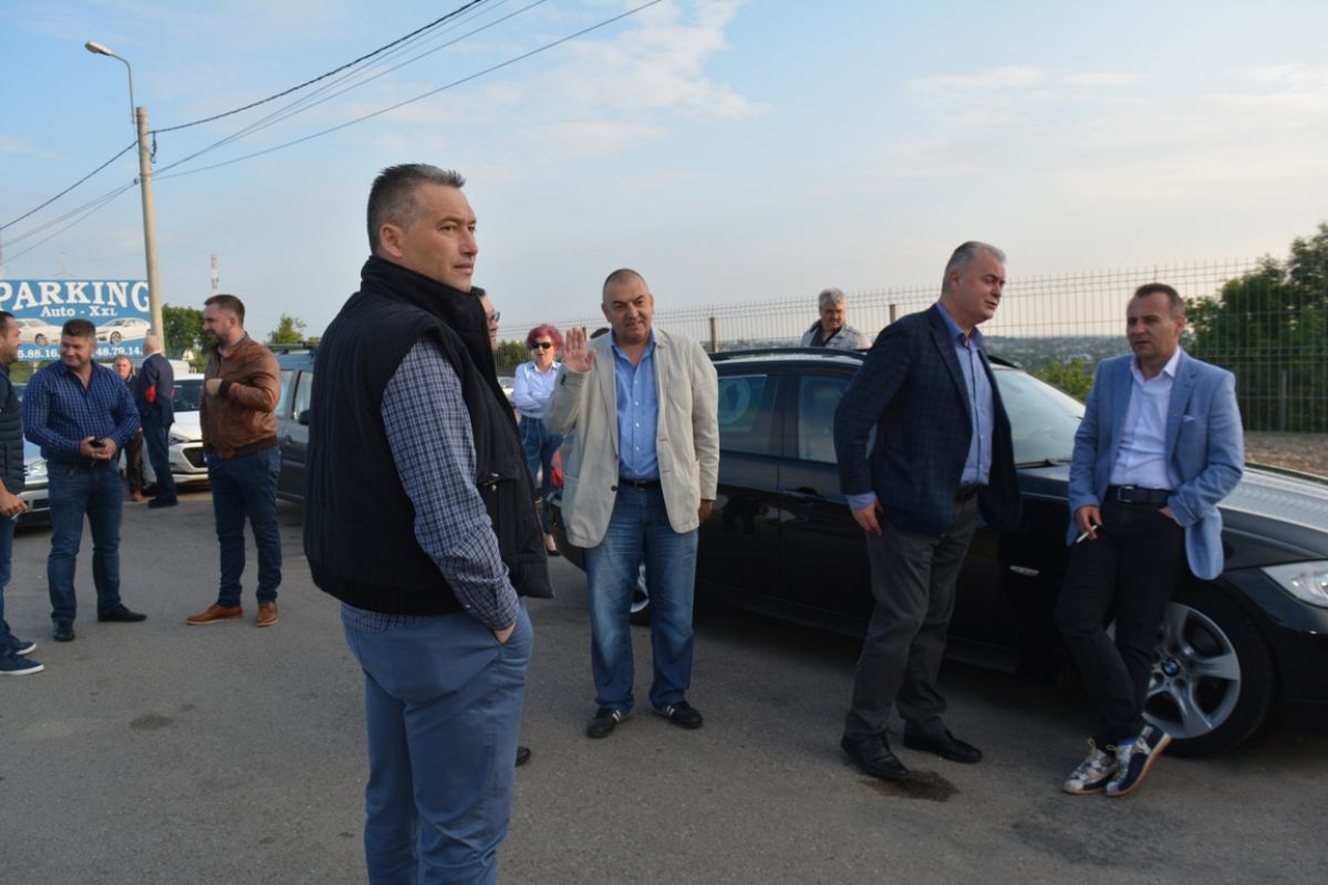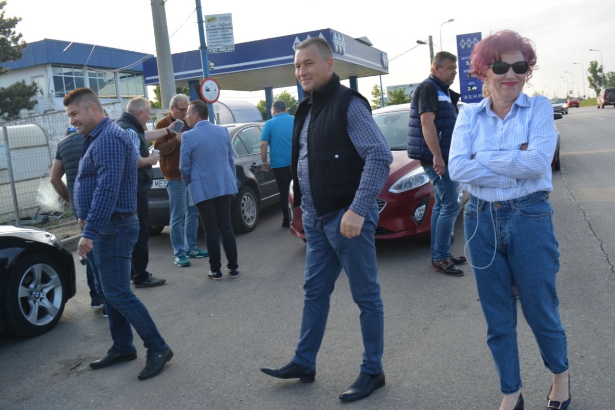 Primarul Cătălin Flutur, senatorul Costel Șoptică, ex-parlamentaii Viorel Grigoraș și Cristian Roman, consilieri județeni și locali tocmai își lipeau pe automobile afișe pe care scria: ”Marșul Moldovei către București - 19 mai 2018” și ”Vrem autostrăzi - Echitate pentru Moldova - Împreună vom reuși”.