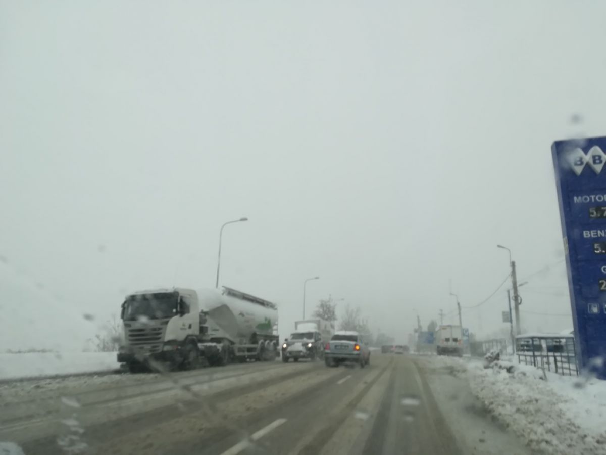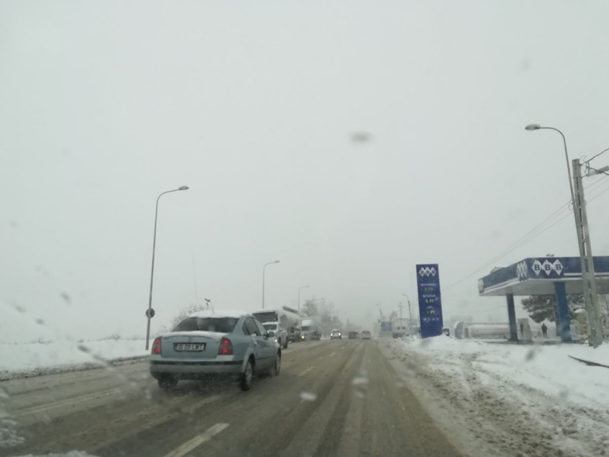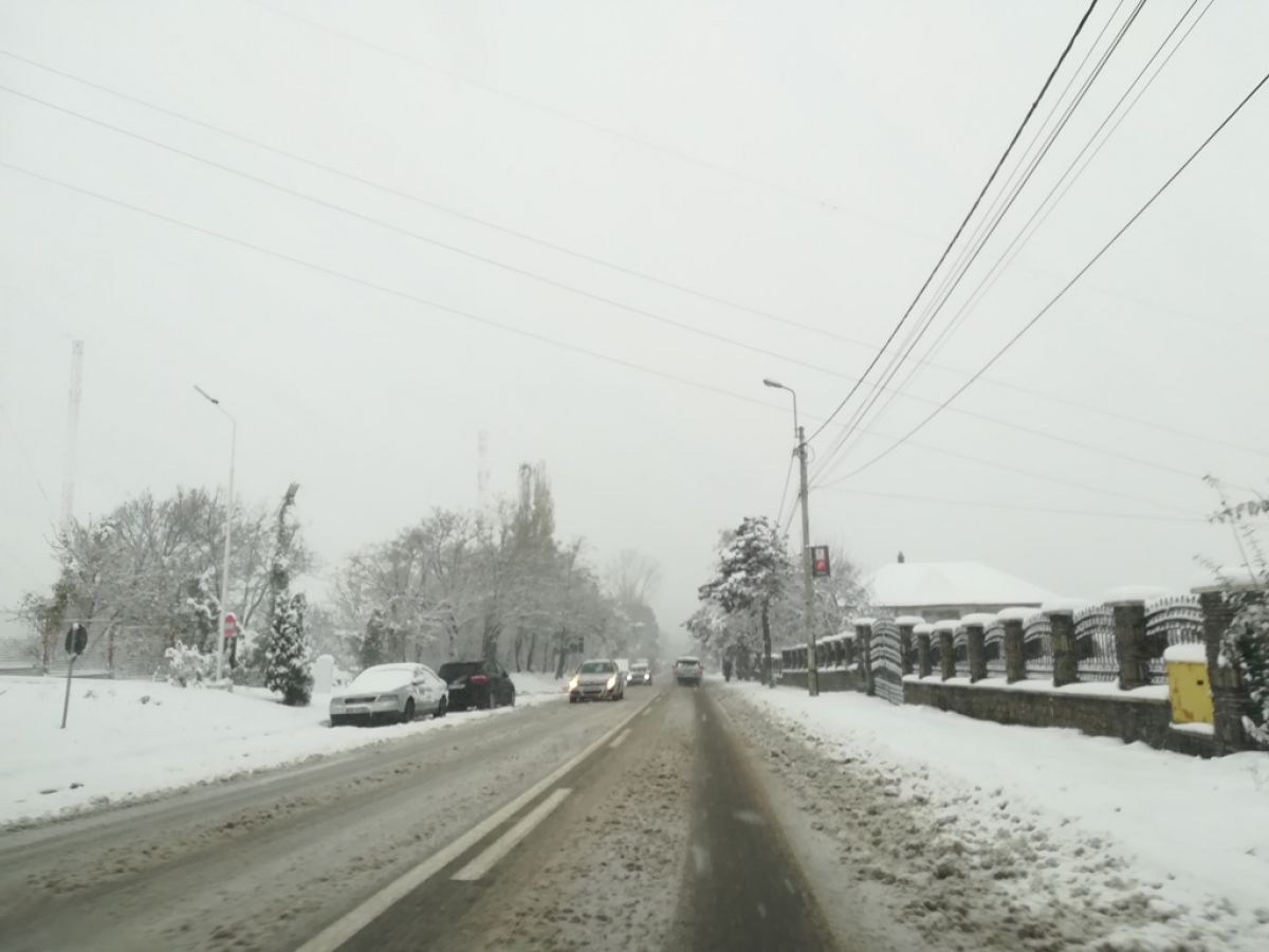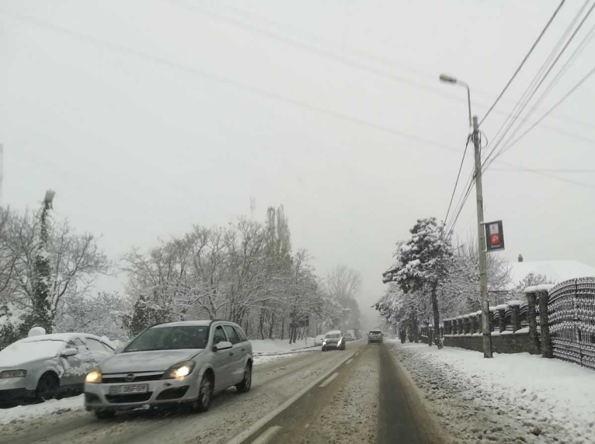 Carosabilul era plin cu zăpadă, nu exista nici o zonă ”la negru” și mai multe echipaje de polițiști încercau să dirijeze circulația.