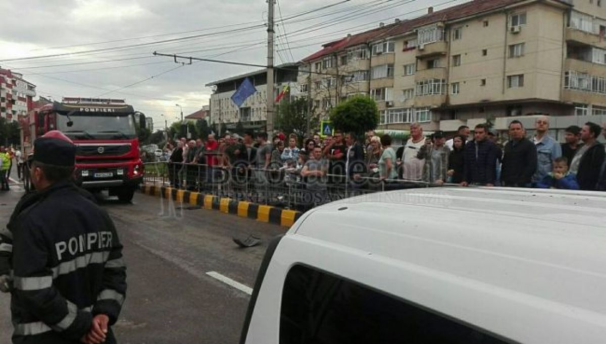 Şoferul a avut viteză foarte mare, spun martorii. Autoturismul a pus la pământ un panou publicitar, a distrus o stație de maxi taxi unde se afla și o bancă, apoi s-a rostogolit pe şosea.