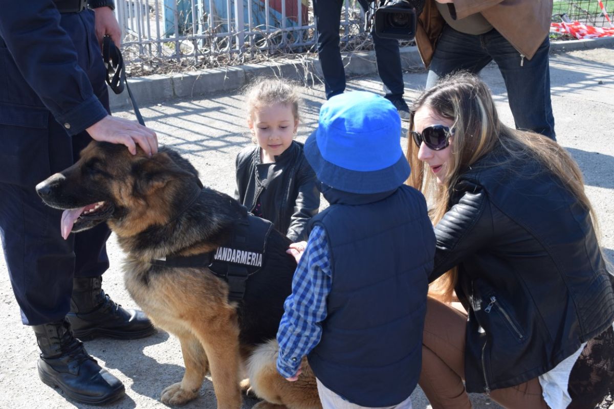 Copiii mai ales au fost cei care au îndrăznit să se apropie de câinii lupi pentru a-i atinge, astfel că necuvântătoarele jandarmilor au fost punctul de atracție al zilei.