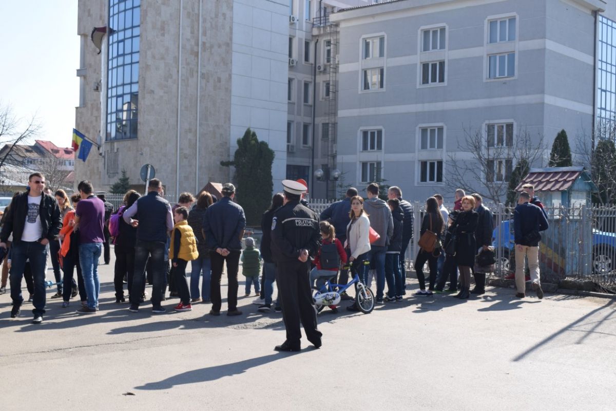 Botoșănenii care s-au aflat la plimbare s-au oprit pentru a vizualiza exercițiile demonstrative ale jandarmilor sau pentru a face fotografii.