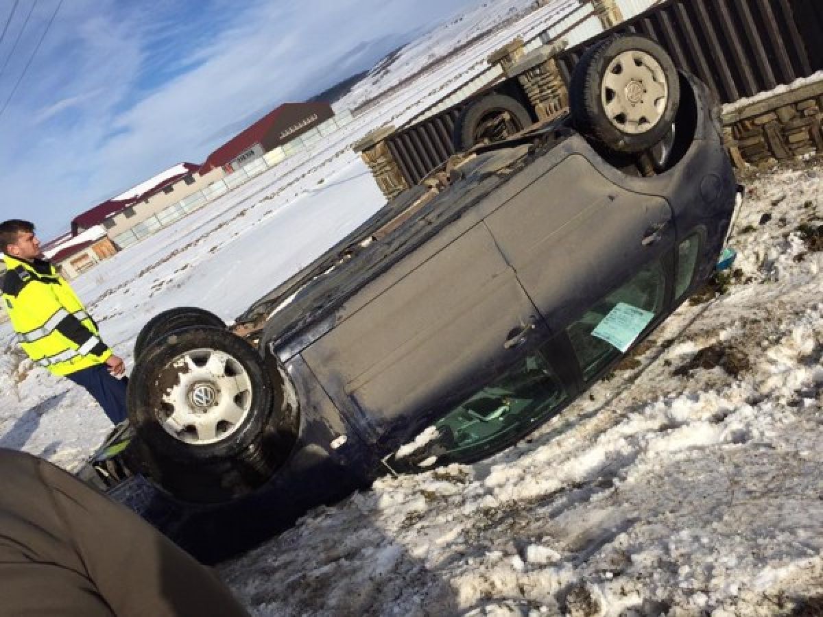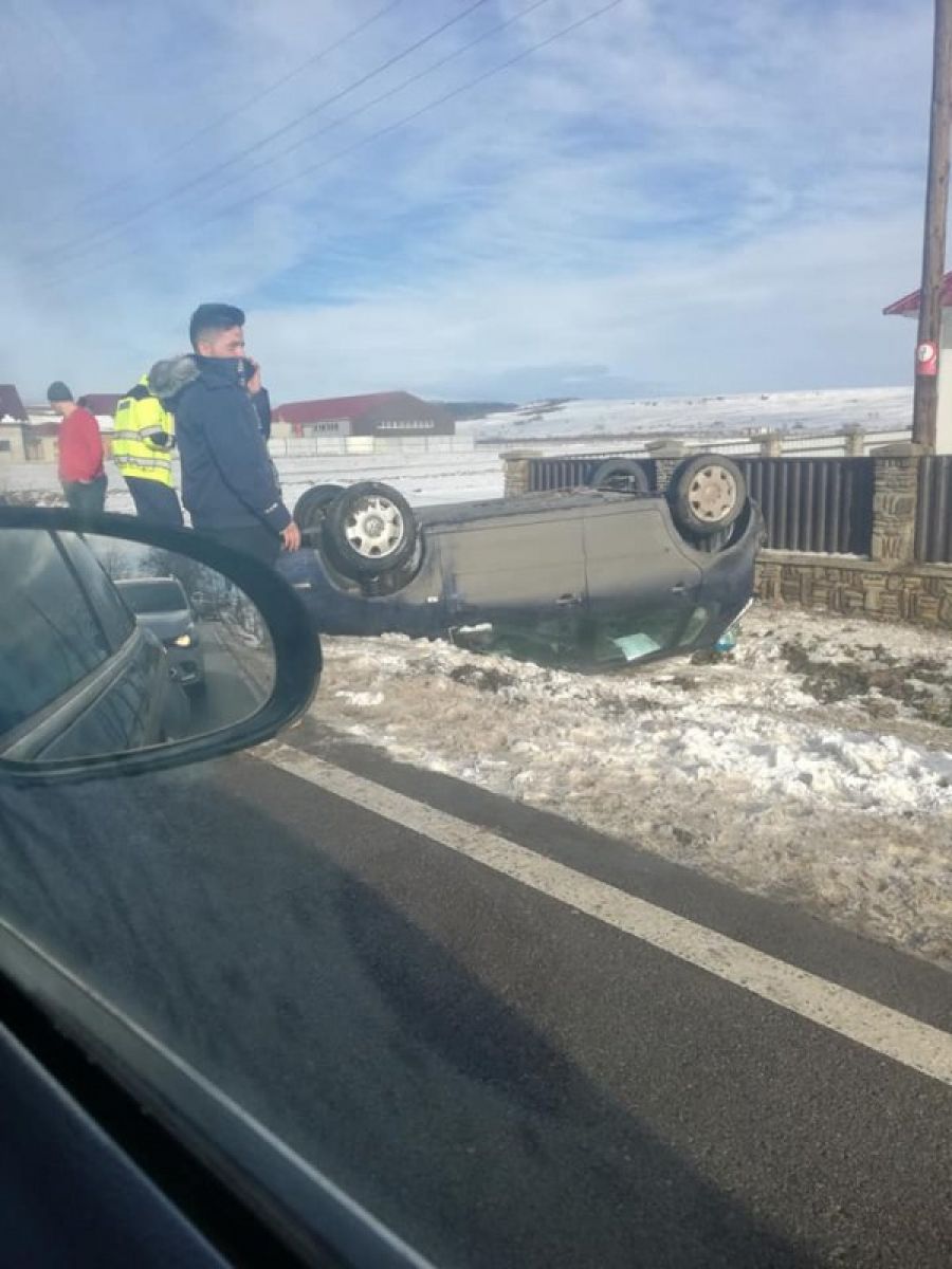 Un autoturism s-a rasturnat pe cupola, dupa ce a lovit gardul unui imobil. Evenimentul rutier avut loc pe DN 2H, pe raza localitatii Milisauti,judeţul Suceava.