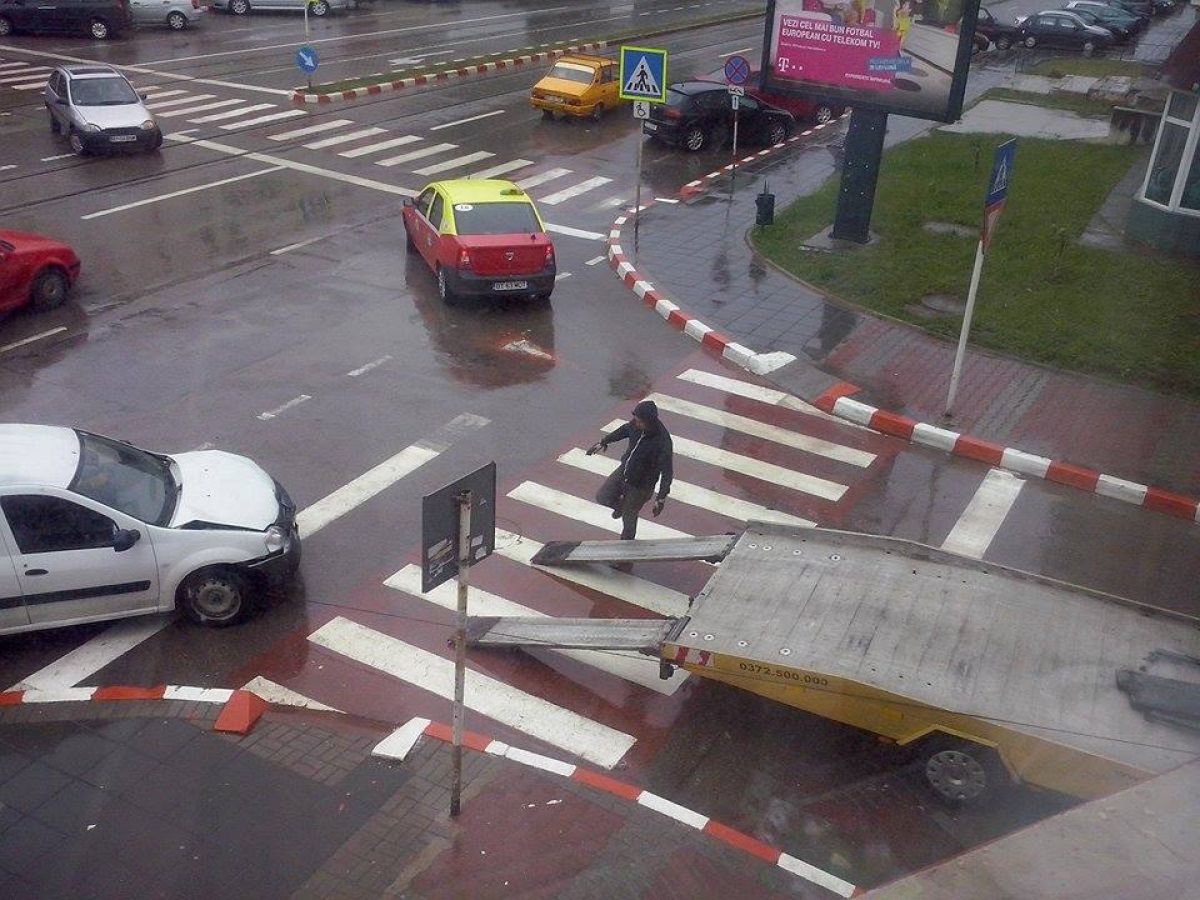 Din primele informații, un autoturism aparținând societății de salubrizare Urban Serv s-a izbit într-un stâlp de electricitate, după ce a derapat pe linia de tramvai. În urma impactului, mașina marca Dacia a fost avariată în partea din față. Polițiști rutieri se află la locul accidentului și efectuează cercetări pentru a stabili cu exactitate ce s-a întâmplat. La fața locului s-a deplasat și o firmă de tractări auto care preia în aceste momente mașina. (Ș.V.)
