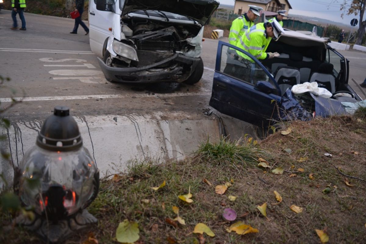 Impactul înregistrat când afară încă era noaptea a fost unul aproape tras la indigo cu cel care a avut loc în vară, atunci când doi tineri, soț și soție, au murit după ce Loganul în care se aflau a fost lovit de un Audi. De altfel, Opelul, care s-a lovit de microbuz, s-a oprit chiar în șanțul dalat unde astăzi dimineața încă mai ardea o lumânare, alături de aceatsa aflându-se o fotografie a celor doi tineri pieriți în accident. Șanțul era plin de elemente de caroserie, chiar și părți din banchete fiind aruncate pe acolo de către echipajul de descarcerare care a intervenit pentrui a scoate oamenii rămași captivi în automobil.