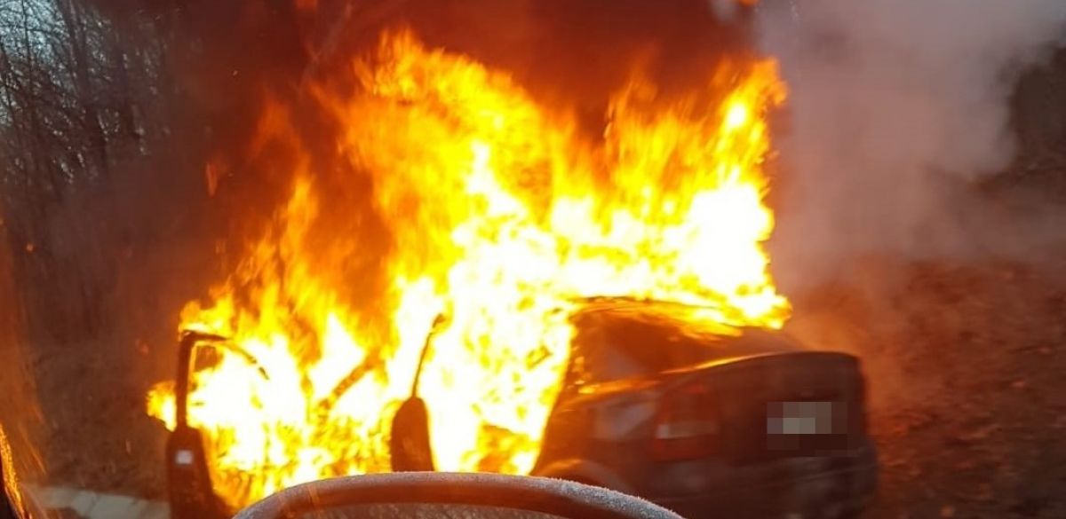 O mașină a luat foc după ce a fost implicată într-un accident rutier pe raza localității Zăicești, marți dimineață.