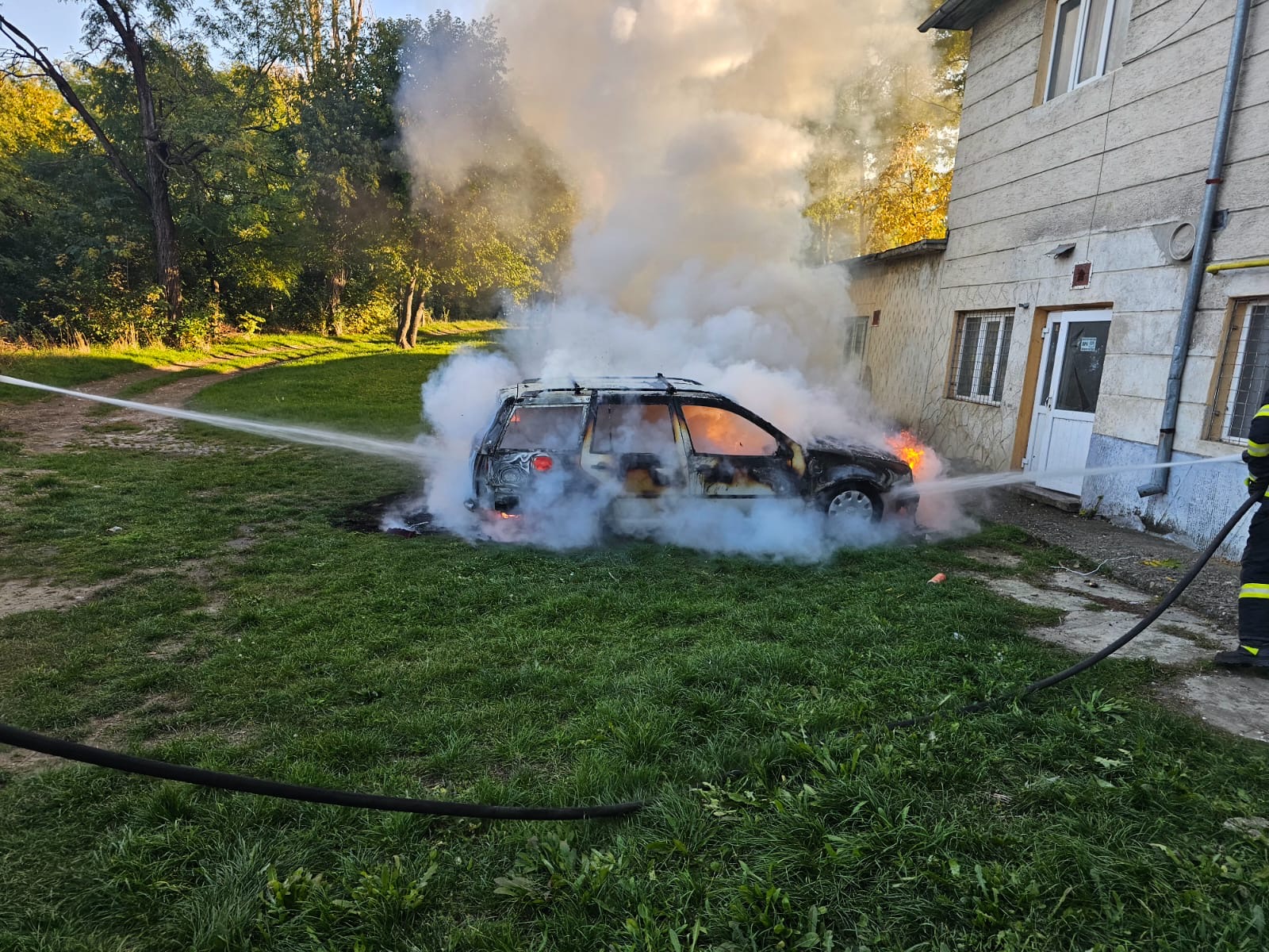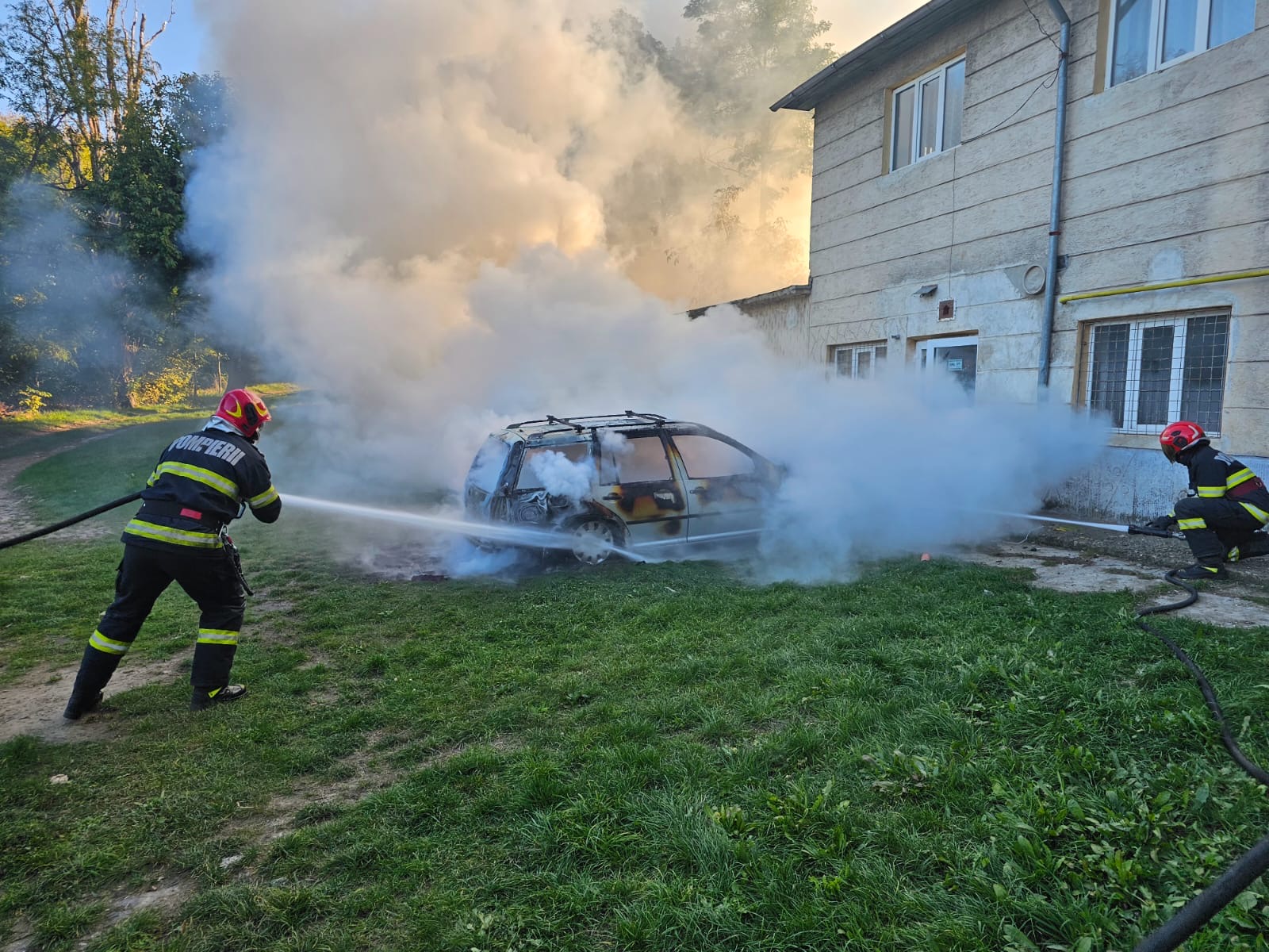 La fața locului au intervenit pompierii din cadrul Detașamentului Dorohoi, cu o autospecială de stingere. Aceștia au constatat că mașina ardea în totalitate și au stins flăcările înainte ca acestea să se extindă la o magazie din apropiere.