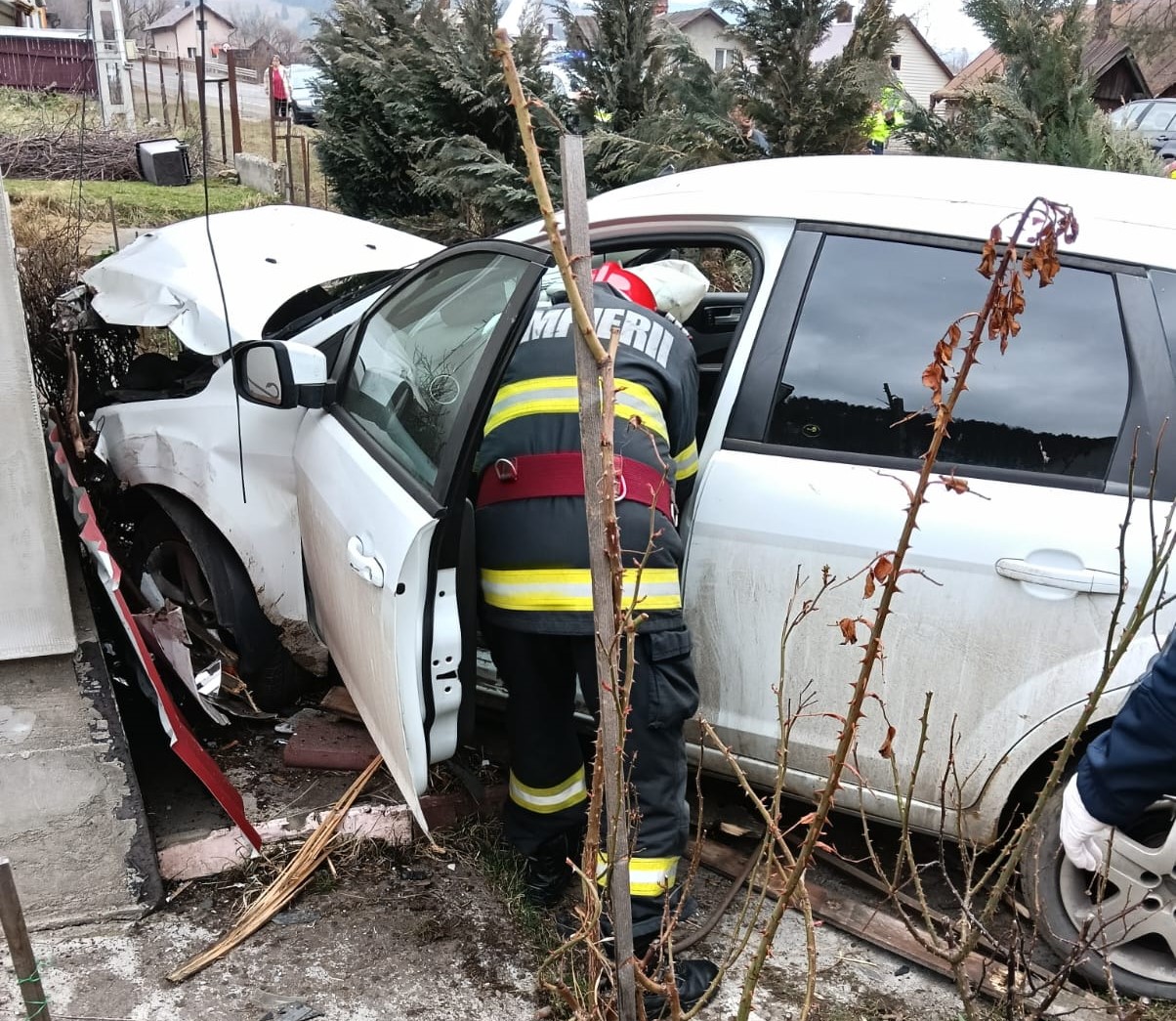 Mașina a intrat prin gardul unei gospodării și s-a oprit în peretele casei de locuit.