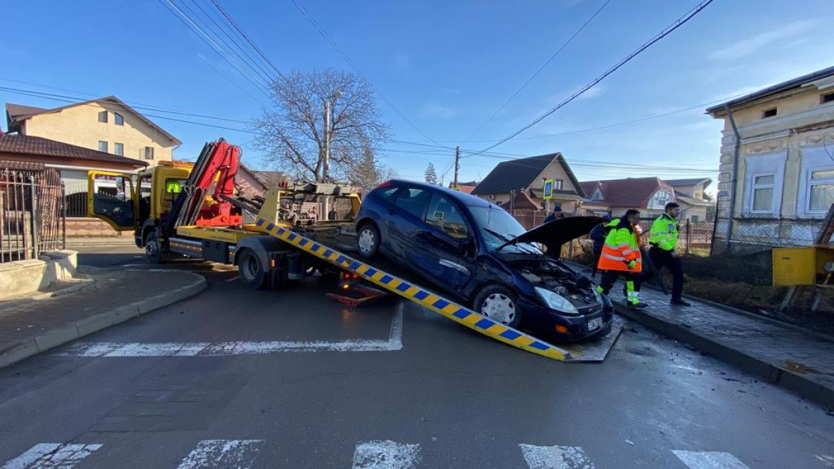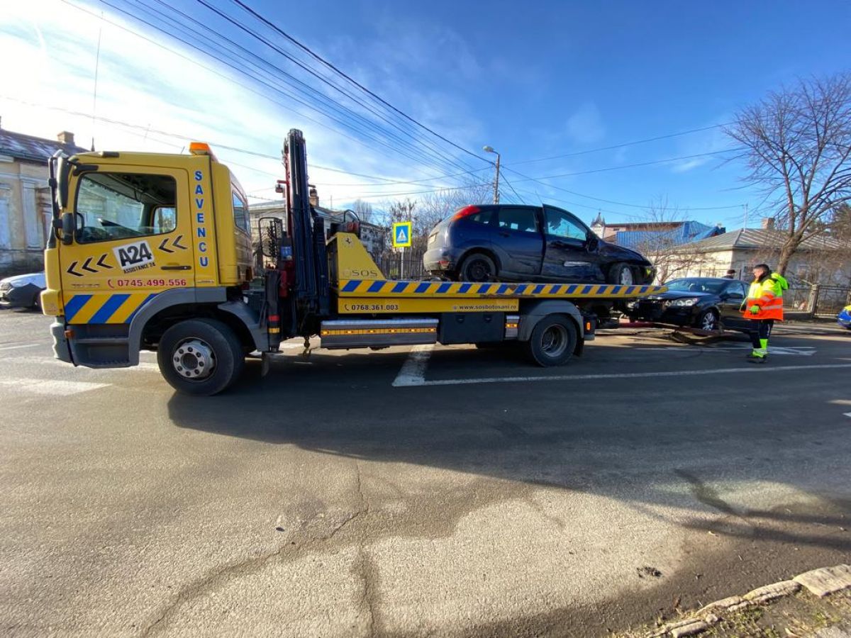 Mașina lovită a fost preluată de o platformă SOS Savencu.