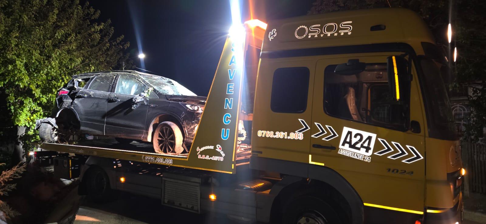 Mașina a fost preluată pe platformă de către S.O.S Savencu.