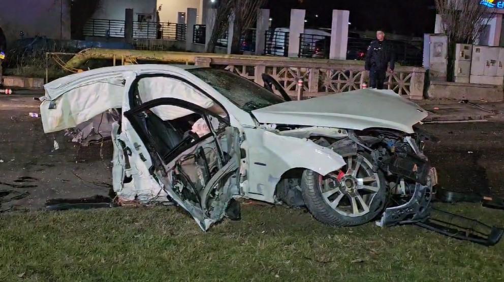 Din primele informații, șoferul unui Mercedes, care gonea cu viteză, ar fi pierdut controlul volanului și s-a izbit de un stâlp aflat pe marginea drumului. Impactul a fost atât de puternic, încât mașina s-a rupt efectiv în două.