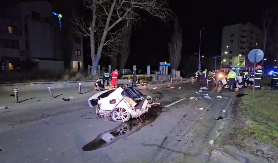 Cinci tineri se aflau în mașină, în momentul accidentului: patru băieţi şi o fată, cu vârste între 21 şi 25 de ani. Din primele informaţii, o maşină care circula cu viteză s-a izbit de un stâlp. Impactul a fost atât de puternic, încât autoturismul s-a rupt efectiv în două, potrivit observatornews.ro