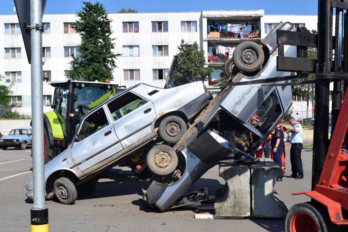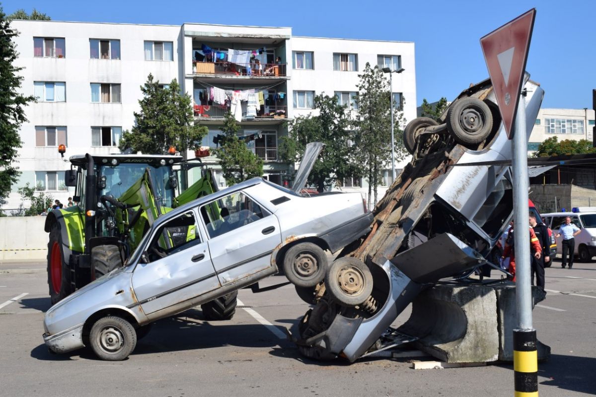 Scenariile au fost trase la sorți, fiind vorba despre situații diferite pentru fiecare județ în parte. Au fost aduse două utilaje pentru poziționarea autoturismelor în vederea redării imaginii fidele a unui accident rutier.