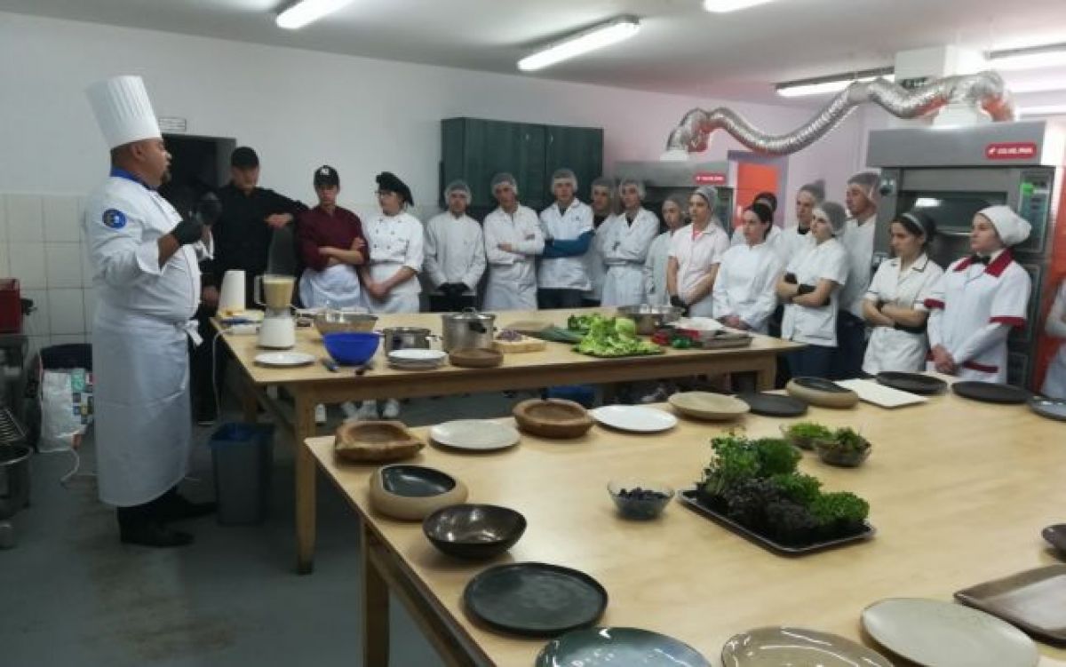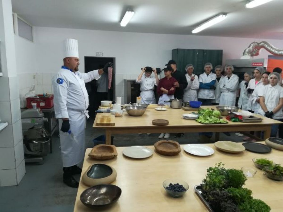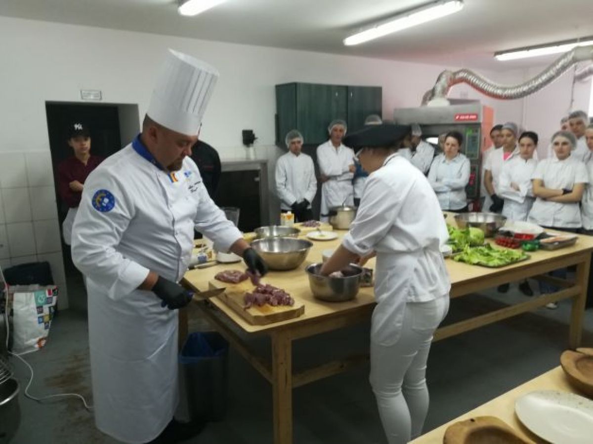 Într-una dintre sălile de practică în domeniul gastronomic, dotată cu tehnologia necesară, zeci de elevi au fost învăţaţi de exemplu cum să facă o garnitură, cum să taie carnea şi să o prepare, care sunt tehnicile cele mai potrivite şi cum să aleagă cele mai bune ustensile. Experienţa a fost unică, mai ales pentru elevii din mediul rural.