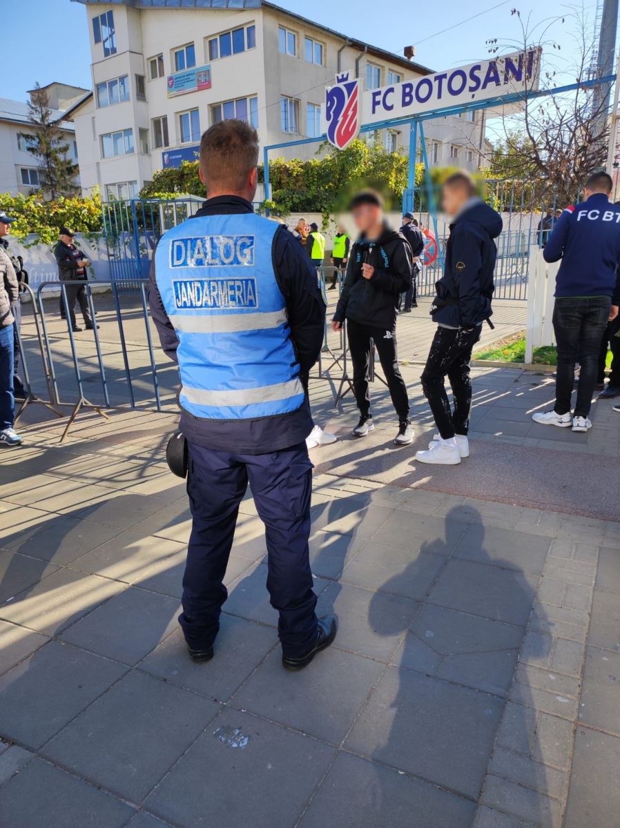 Gruparea de Jandarmi Mobilă "Alexandru cel Bun" Bacău, împreună cu jandarmi din Inspectoratul Județean Botoșani, polițiști și pompieri botoșăneni, va asigura măsurile de ordine și siguranță publică în municipiul Botoșani, la meciul de fotbal dintre echipele F.C. Botoșani și F.C. Voluntari, partidă ce se va disputa astăzi,4 noiembrie a.c., pe stadionul municipal din localitate, cu începere de la ora 18.00, iar publicul va avea acces pe stadion începând cu ora 17.00.