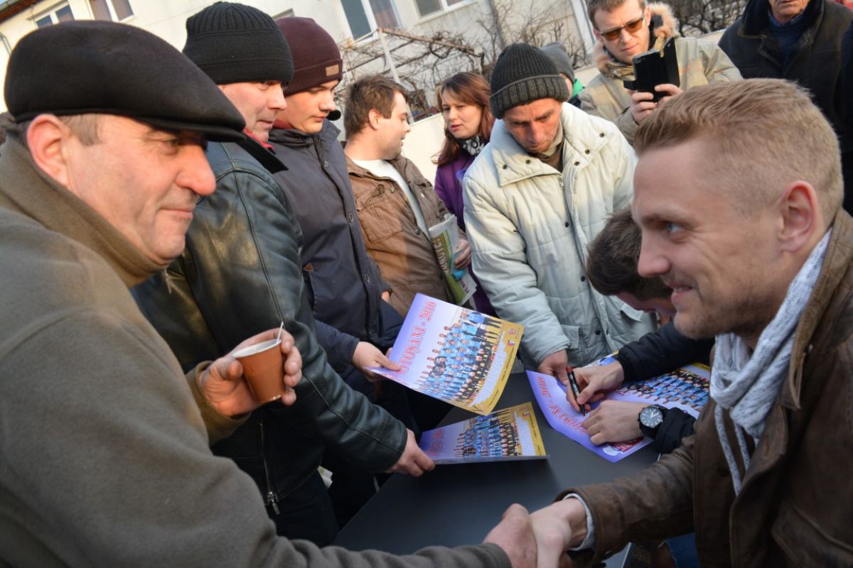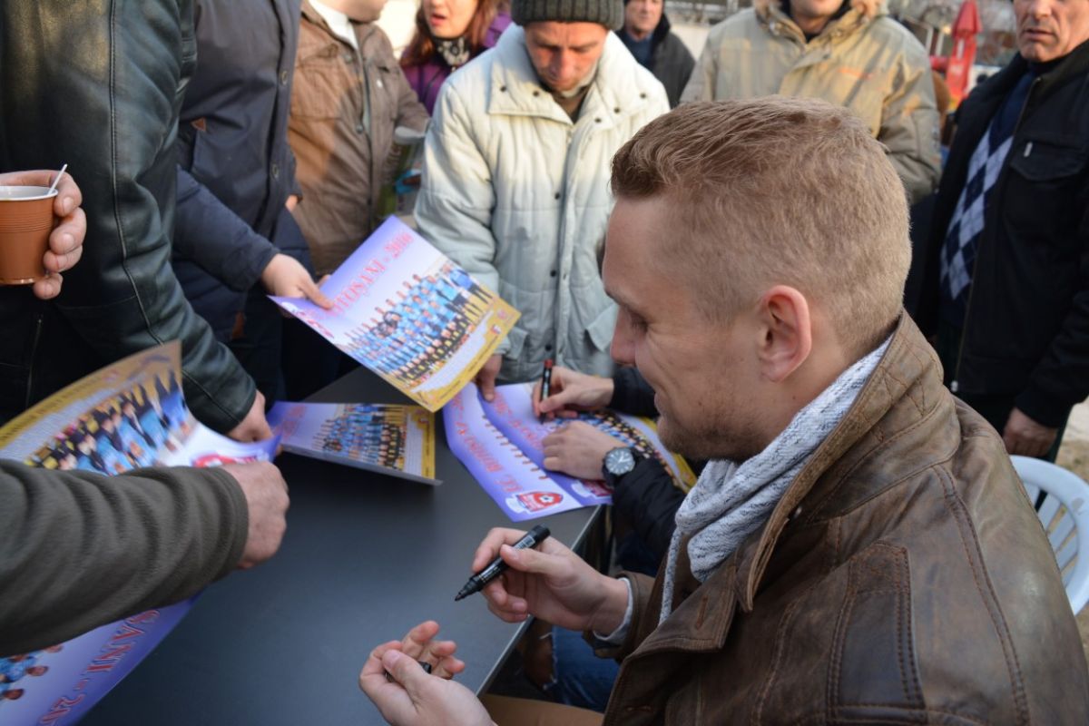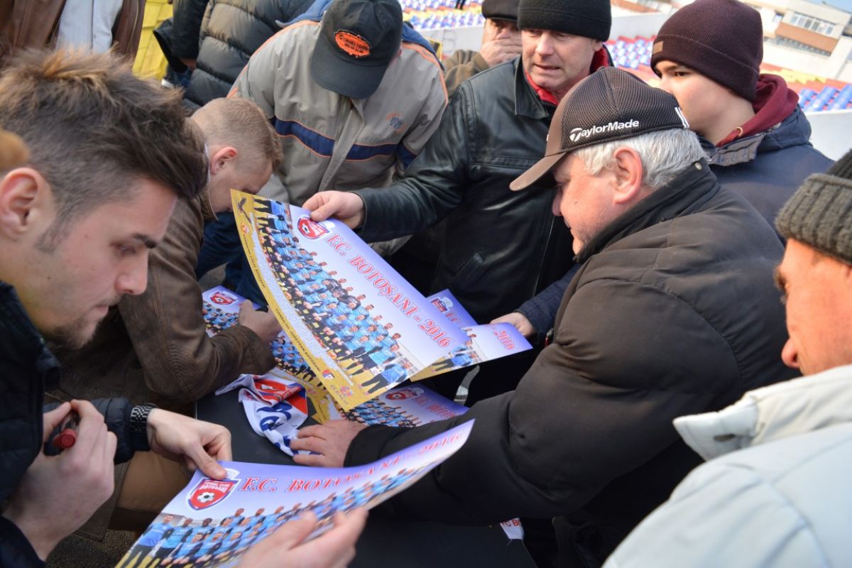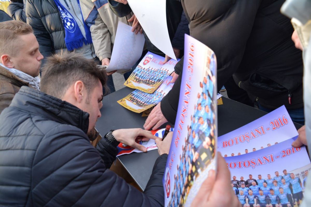 Atacantul Matuleviciuc şi portarul Avram au aşteptat spectatorii cu postere şi la o masă montată în zona din faţa galeriei „Dark Hooliogans” şi-au pus iscălitura pe 300 de fotografii cu întreg lotul. Jucătorii au fost aleşi din rândul celor care nu evoluează, vârful fiind accidentat, iar celălalt este al treilea goalkeeper. Înainte de FC Botoşani - Concordia Chiajna, 0 - 1 în minutul 35, microbiştii s-au îngrămădit să prindă un poster cu autograf, jucătorii fiind aproape sufocaţi de fani. (S.B.)